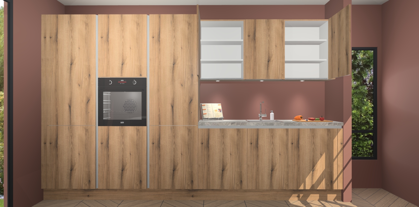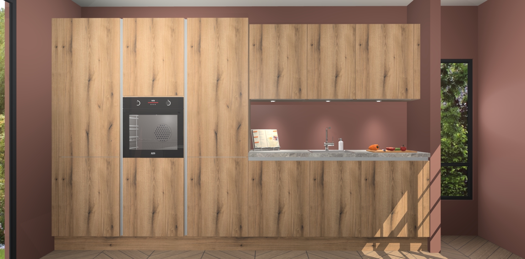Maak kennis met de nieuwe Goud Eiken greeploze keuken Straatsburg, dat gemaakt is voor de moderne huiseigenaar. Deze chique en eigentijdse keuken geeft uw huis een instant upgrade. Het Goud Eiken greeploze ontwerp creëert de perfecte balans tussen elegantie en functionaliteit en geeft uw ruimte een strakke, uitnodigende sfeer. Het spoeleiland geeft ruime opbergruimte en met de soft-close deuren is deze keuken perfect voor elk huis.
