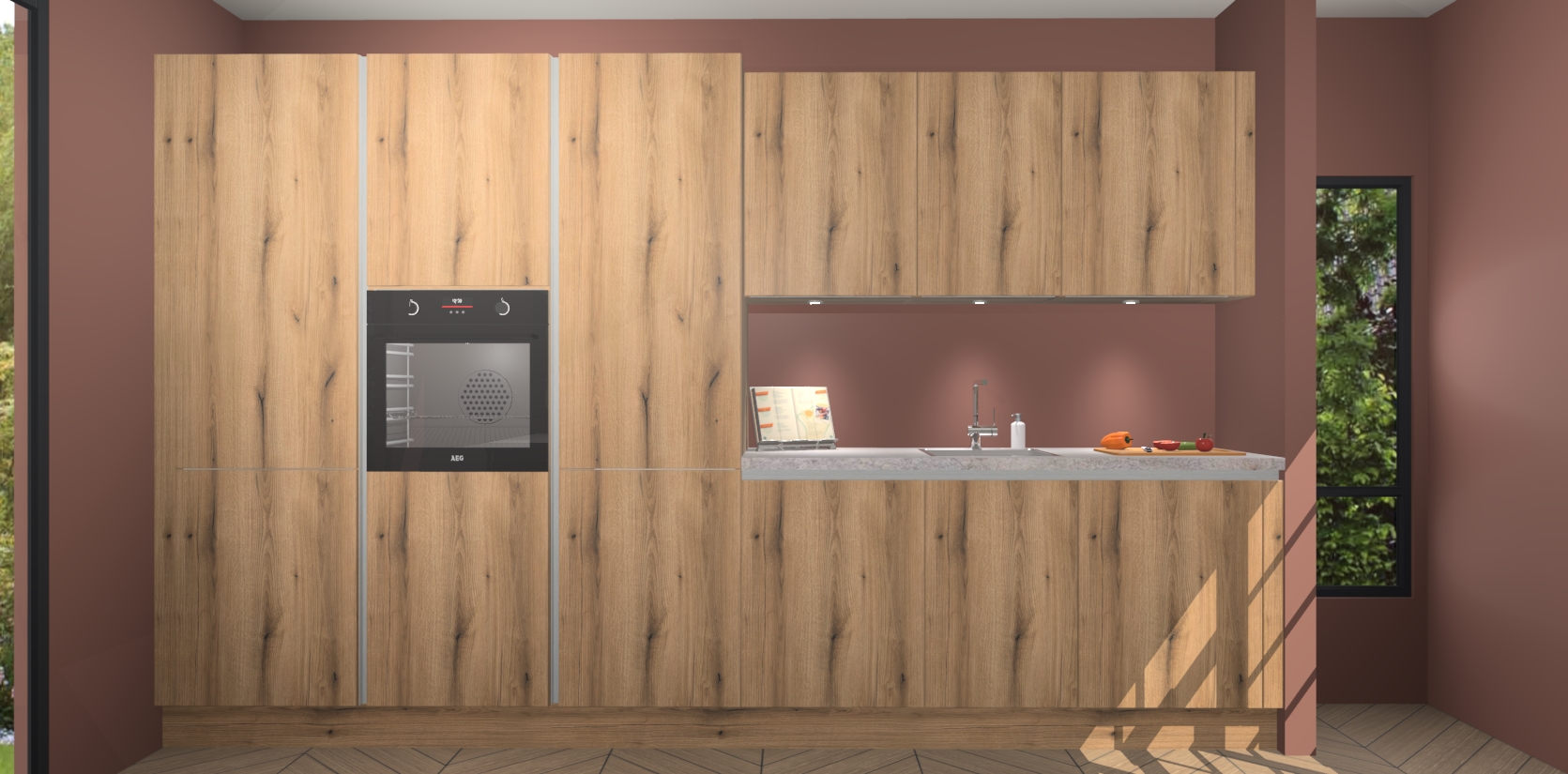 Maak kennis met de nieuwe Goud Eiken greeploze keuken Straatsburg, dat gemaakt is voor de moderne huiseigenaar. Deze chique en eigentijdse keuken geeft uw huis een instant upgrade. Het Goud Eiken greeploze ontwerp creëert de perfecte balans tussen elegantie en functionaliteit en geeft uw ruimte een strakke, uitnodigende sfeer. Het spoeleiland geeft ruime opbergruimte en met de soft-close deuren is deze keuken perfect voor elk huis.