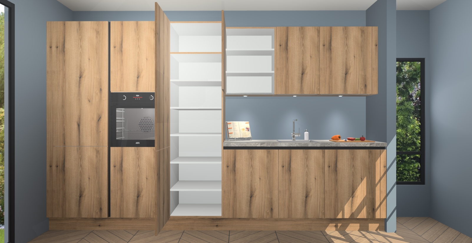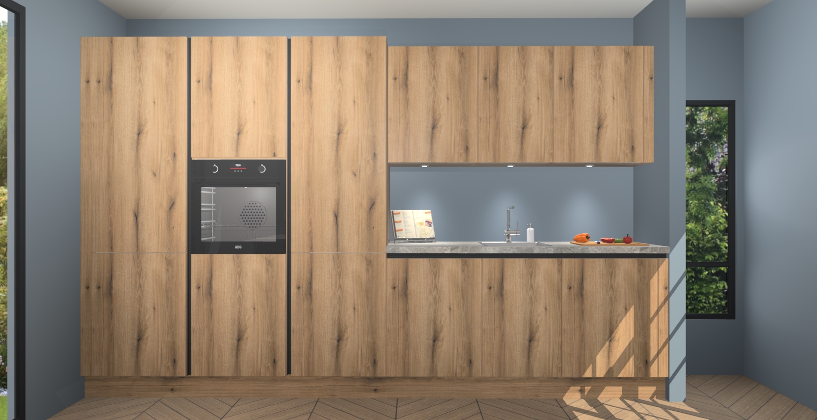 Maak kennis met de nieuwe Goud Eiken greeploze keuken Straatsburg, dat gemaakt is voor de moderne huiseigenaar. Deze chique en eigentijdse keuken geeft uw huis een instant upgrade. Het Goud Eiken greeploze ontwerp creëert de perfecte balans tussen elegantie en functionaliteit en geeft uw ruimte een strakke, uitnodigende sfeer. Het spoeleiland geeft ruime opbergruimte en met de soft-close deuren is deze keuken perfect voor elk huis.
