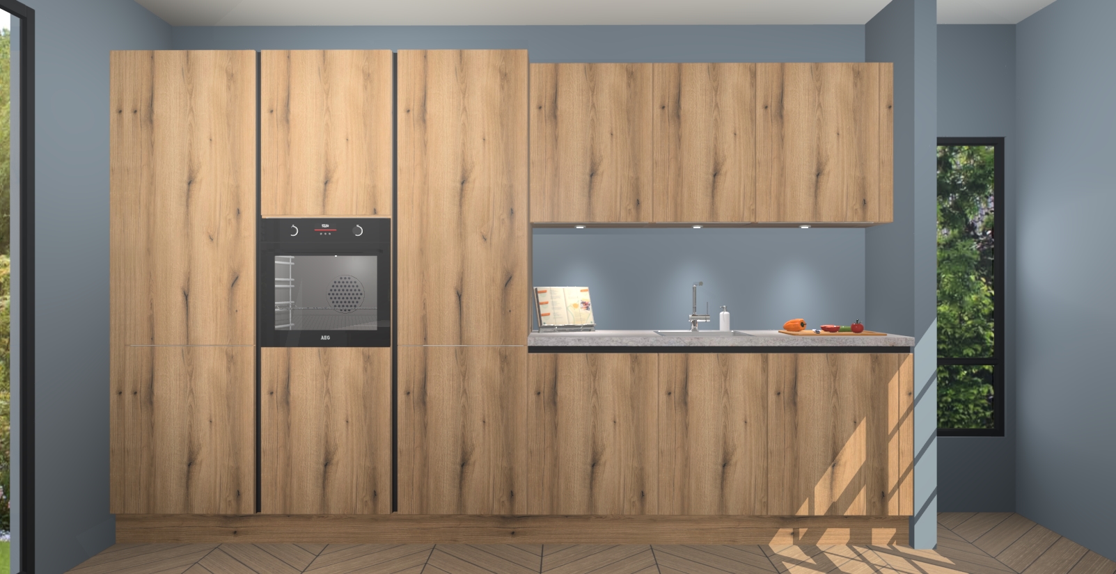 Maak kennis met de nieuwe Goud Eiken greeploze keuken Straatsburg, dat gemaakt is voor de moderne huiseigenaar. Deze chique en eigentijdse keuken geeft uw huis een instant upgrade. Het Goud Eiken greeploze ontwerp creëert de perfecte balans tussen elegantie en functionaliteit en geeft uw ruimte een strakke, uitnodigende sfeer. Het spoeleiland geeft ruime opbergruimte en met de soft-close deuren is deze keuken perfect voor elk huis.