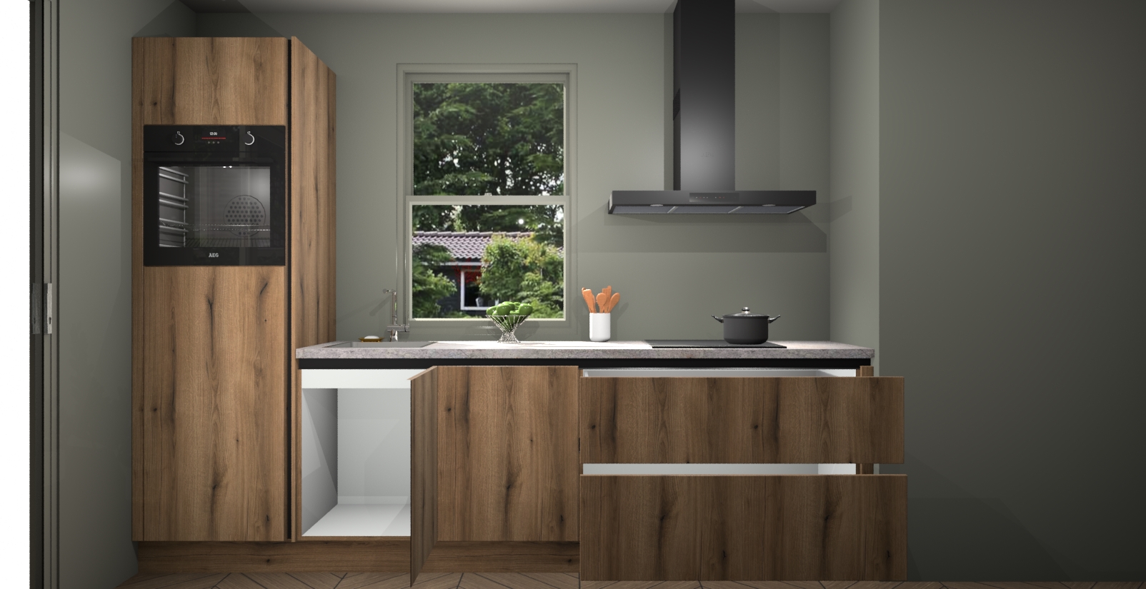 Bent u op zoek naar een opvallende keuken die uw stijl en smaak weerspiegelt? Zo ja, dan is onze prachtige Goud Eiken keuken Toulouse de perfecte oplossing. Deze prachtige keuken biedt een unieke combinatie van geraffineerd modern design en gebruiksgemak.