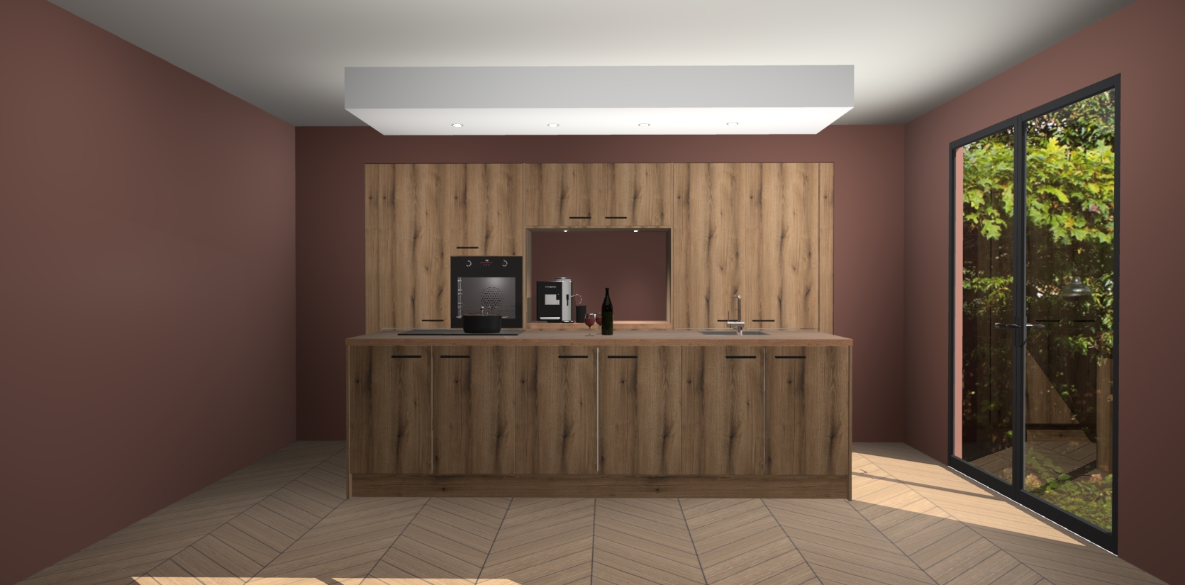 Sfeervol luxe met de Goud Eiken keuken Lodz! Reken op een moderne look die met zijn schitterende Goud Eiken kleur en het prachtige keukeneiland echt zal schitteren in uw keuken. Met veel verschillende berging opties zult u alles kunnen opbergen wat u nodig heeft in deze hoopvolle ruimte, waaronder ook soft-close vergrendeling.