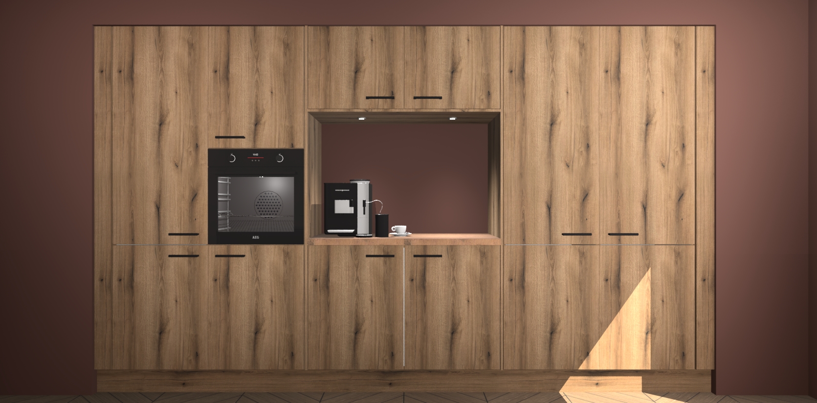 De Goud Eiken keuken Lodz wordt geleverd met een set van 5 ingebouwde apparaten: Een oven, inductiekookplaat, afzuigkap, vaatwasser en koelkast. Deze kunnen gemakkelijk worden opgewaardeerd naar AEG. Met de gegarandeerde lage prijs en de snelle levering van 7 weken kan u er op rekenen dat de Goud Eiken keuken Lodz zo snel mogelijk uw huis bereikt!