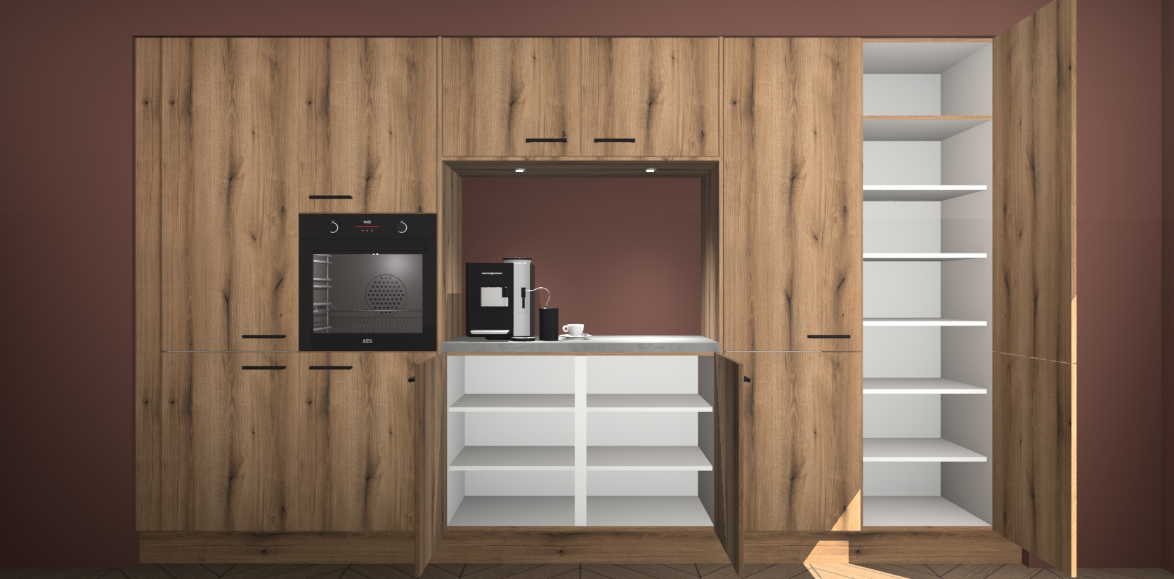 De Goud Eiken keuken Lodz wordt geleverd met een set van 5 ingebouwde apparaten: Een oven, inductiekookplaat, afzuigkap, vaatwasser en koelkast. Deze kunnen gemakkelijk worden opgewaardeerd naar AEG. Met de gegarandeerde lage prijs en de snelle levering van 7 weken kan u er op rekenen dat de Goud Eiken keuken Lodz zo snel mogelijk uw huis bereikt!