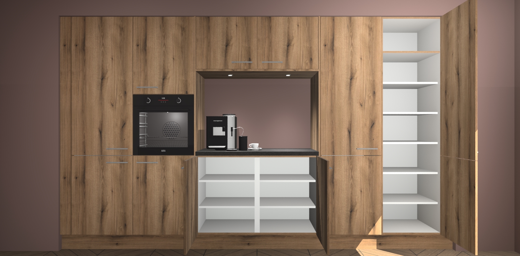 De Goud Eiken keuken Lodz wordt geleverd met een set van 5 ingebouwde apparaten: Een oven, inductiekookplaat, afzuigkap, vaatwasser en koelkast. Deze kunnen gemakkelijk worden opgewaardeerd naar AEG. Met de gegarandeerde lage prijs en de snelle levering van 7 weken kan u er op rekenen dat de Goud Eiken keuken Lodz zo snel mogelijk uw huis bereikt!