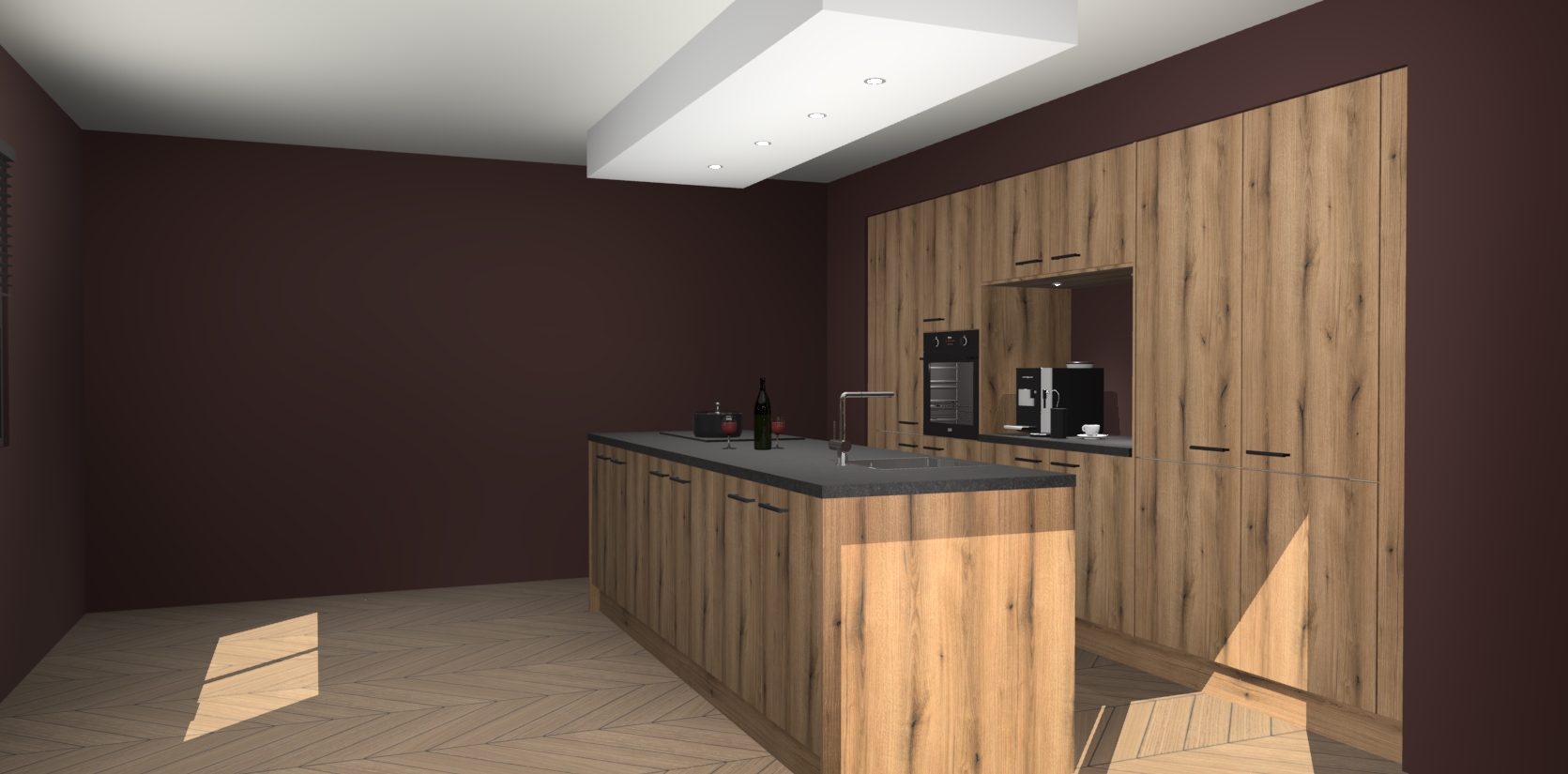 Sfeervol luxe met de Goud Eiken keuken Lodz! Reken op een moderne look die met zijn schitterende Goud Eiken kleur en het prachtige keukeneiland echt zal schitteren in uw keuken. Met veel verschillende berging opties zult u alles kunnen opbergen wat u nodig heeft in deze hoopvolle ruimte, waaronder ook soft-close vergrendeling.