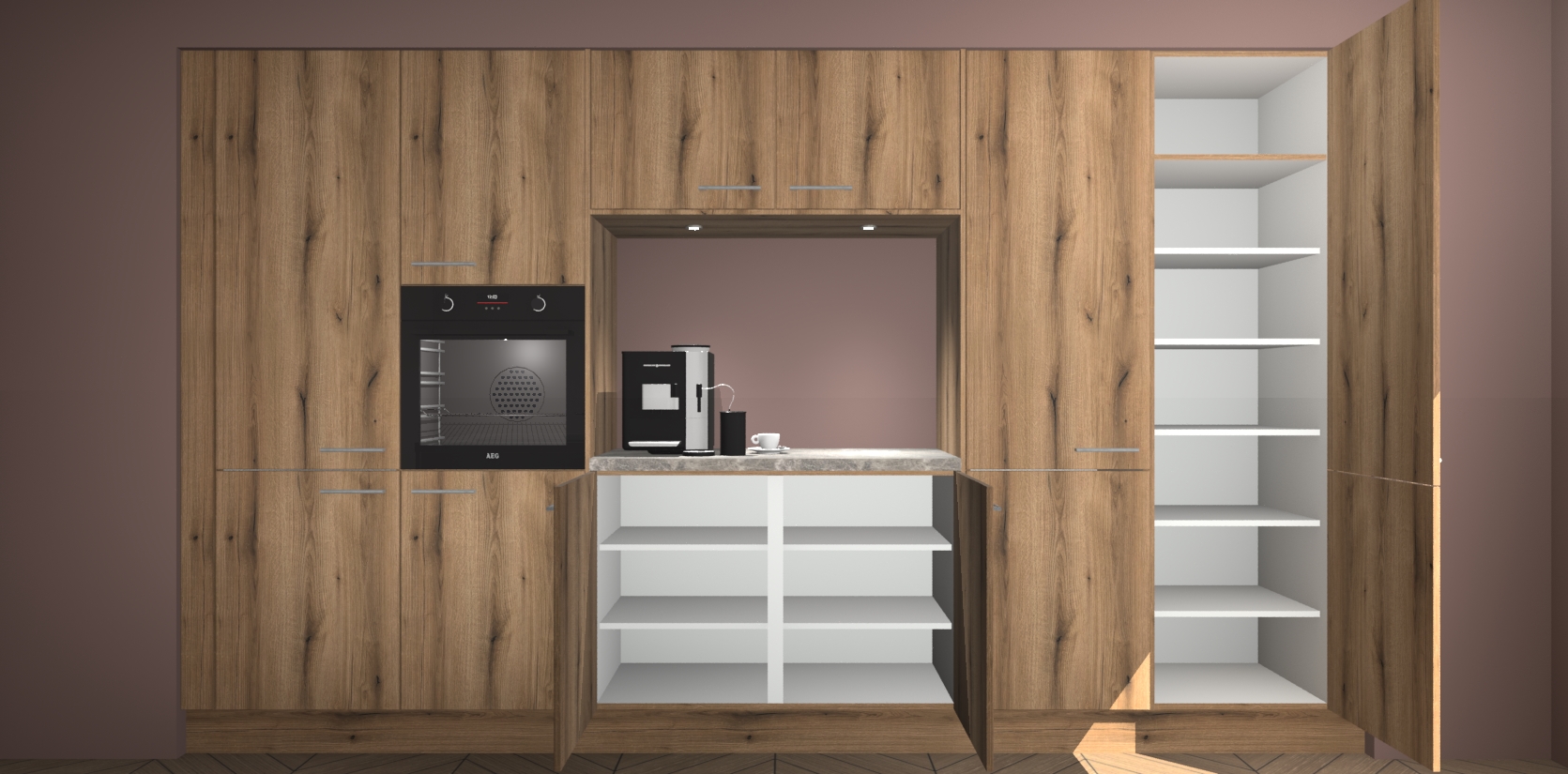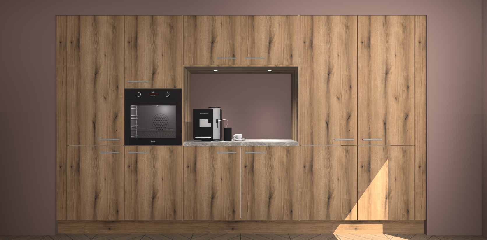 De Goud Eiken keuken Lodz wordt geleverd met een set van 5 ingebouwde apparaten: Een oven, inductiekookplaat, afzuigkap, vaatwasser en koelkast. Deze kunnen gemakkelijk worden opgewaardeerd naar AEG. Met de gegarandeerde lage prijs en de snelle levering van 7 weken kan u er op rekenen dat de Goud Eiken keuken Lodz zo snel mogelijk uw huis bereikt!