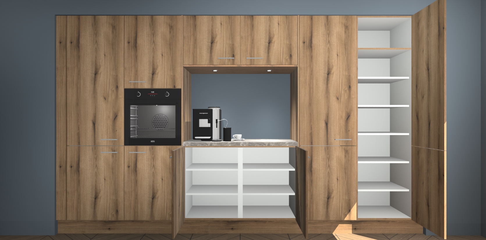 De Goud Eiken keuken Lodz wordt geleverd met een set van 5 ingebouwde apparaten: Een oven, inductiekookplaat, afzuigkap, vaatwasser en koelkast. Deze kunnen gemakkelijk worden opgewaardeerd naar AEG. Met de gegarandeerde lage prijs en de snelle levering van 7 weken kan u er op rekenen dat de Goud Eiken keuken Lodz zo snel mogelijk uw huis bereikt!