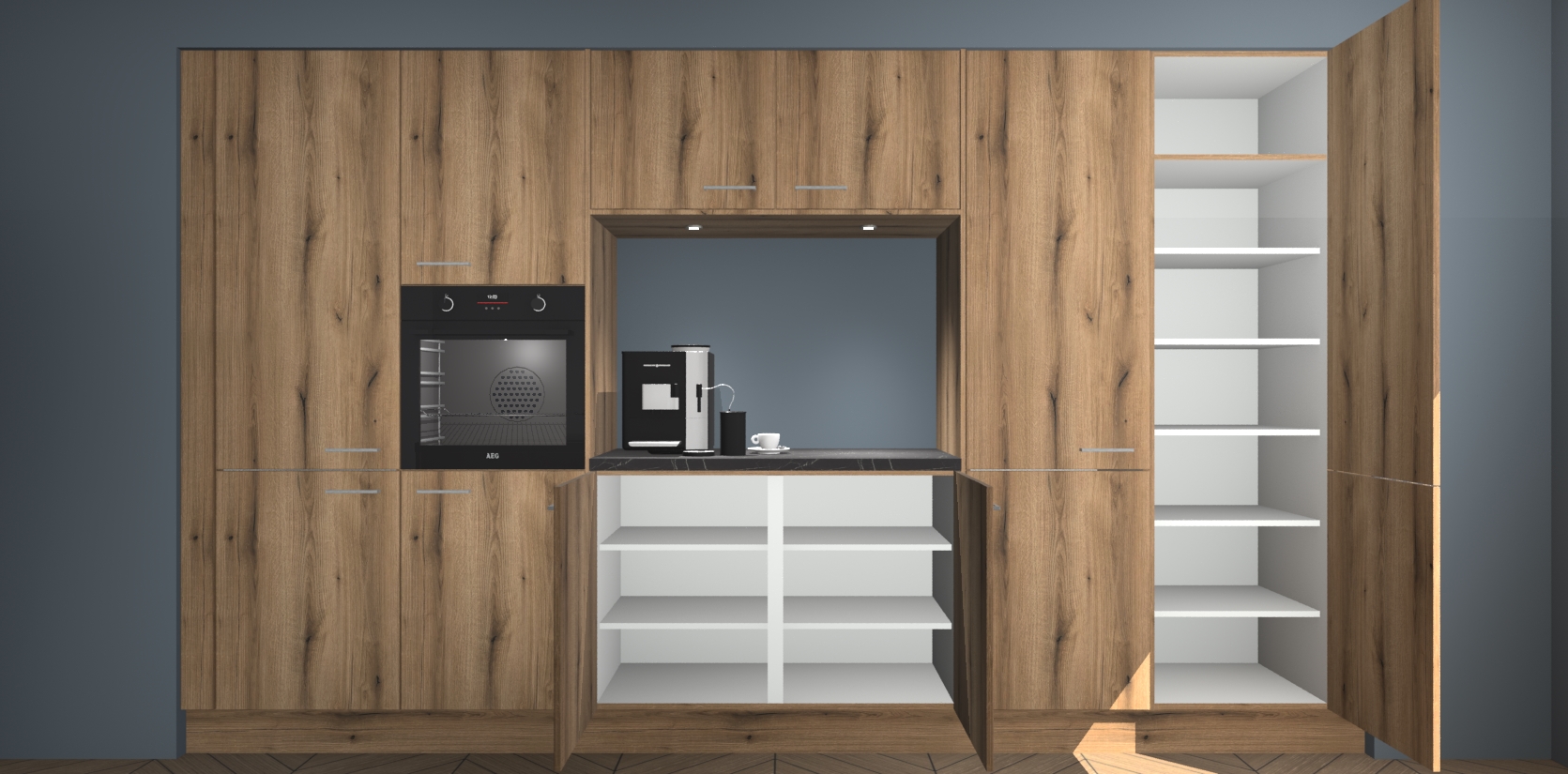 De Goud Eiken keuken Lodz wordt geleverd met een set van 5 ingebouwde apparaten: Een oven, inductiekookplaat, afzuigkap, vaatwasser en koelkast. Deze kunnen gemakkelijk worden opgewaardeerd naar AEG. Met de gegarandeerde lage prijs en de snelle levering van 7 weken kan u er op rekenen dat de Goud Eiken keuken Lodz zo snel mogelijk uw huis bereikt!