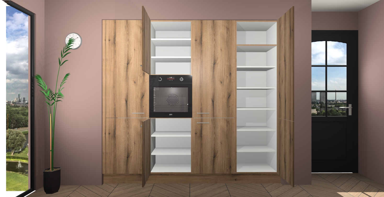 Dankzij de vele opbergruimte wordt praktisch elke centimeter van uw keuken optimaal benut, wat de ruimte een opgeruimde en sfeervolle uitstraling geeft. Bovendien zijn we er trots op dat we een snelle levering van 7 weken en een vaste lage prijs kunnen bieden, zodat u deze prachtige keuken in een mum van tijd in huis hebt!