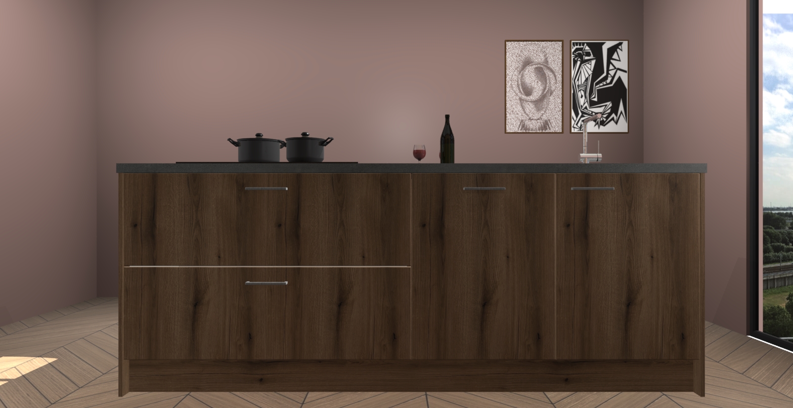 Inclusief plinten, stelpoten en werkblad
