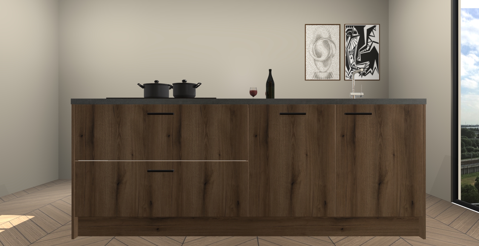 Inclusief plinten, stelpoten en werkblad