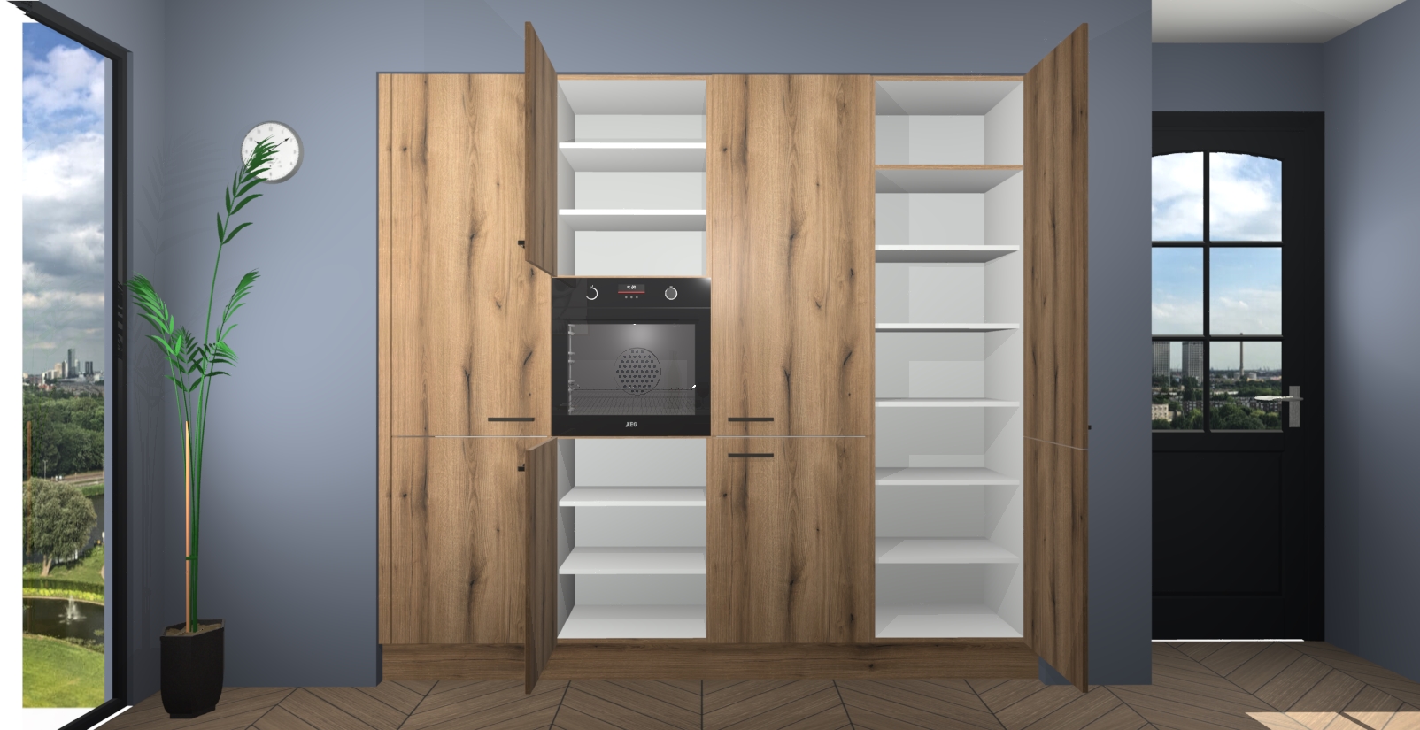 Dankzij de vele opbergruimte wordt praktisch elke centimeter van uw keuken optimaal benut, wat de ruimte een opgeruimde en sfeervolle uitstraling geeft. Bovendien zijn we er trots op dat we een snelle levering van 7 weken en een vaste lage prijs kunnen bieden, zodat u deze prachtige keuken in een mum van tijd in huis hebt!