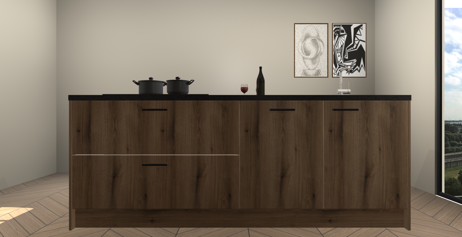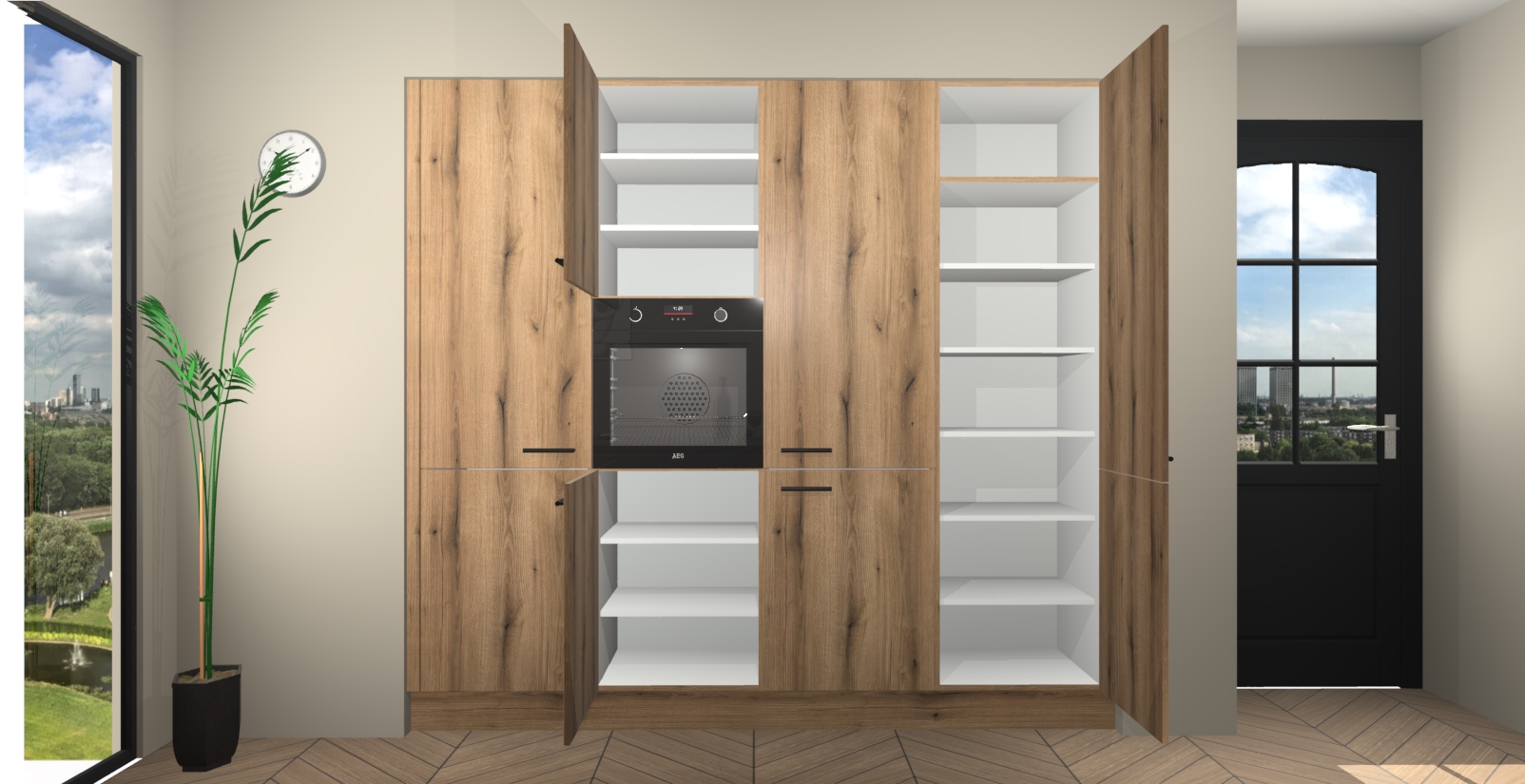 Dankzij de vele opbergruimte wordt praktisch elke centimeter van uw keuken optimaal benut, wat de ruimte een opgeruimde en sfeervolle uitstraling geeft. Bovendien zijn we er trots op dat we een snelle levering van 7 weken en een vaste lage prijs kunnen bieden, zodat u deze prachtige keuken in een mum van tijd in huis hebt!