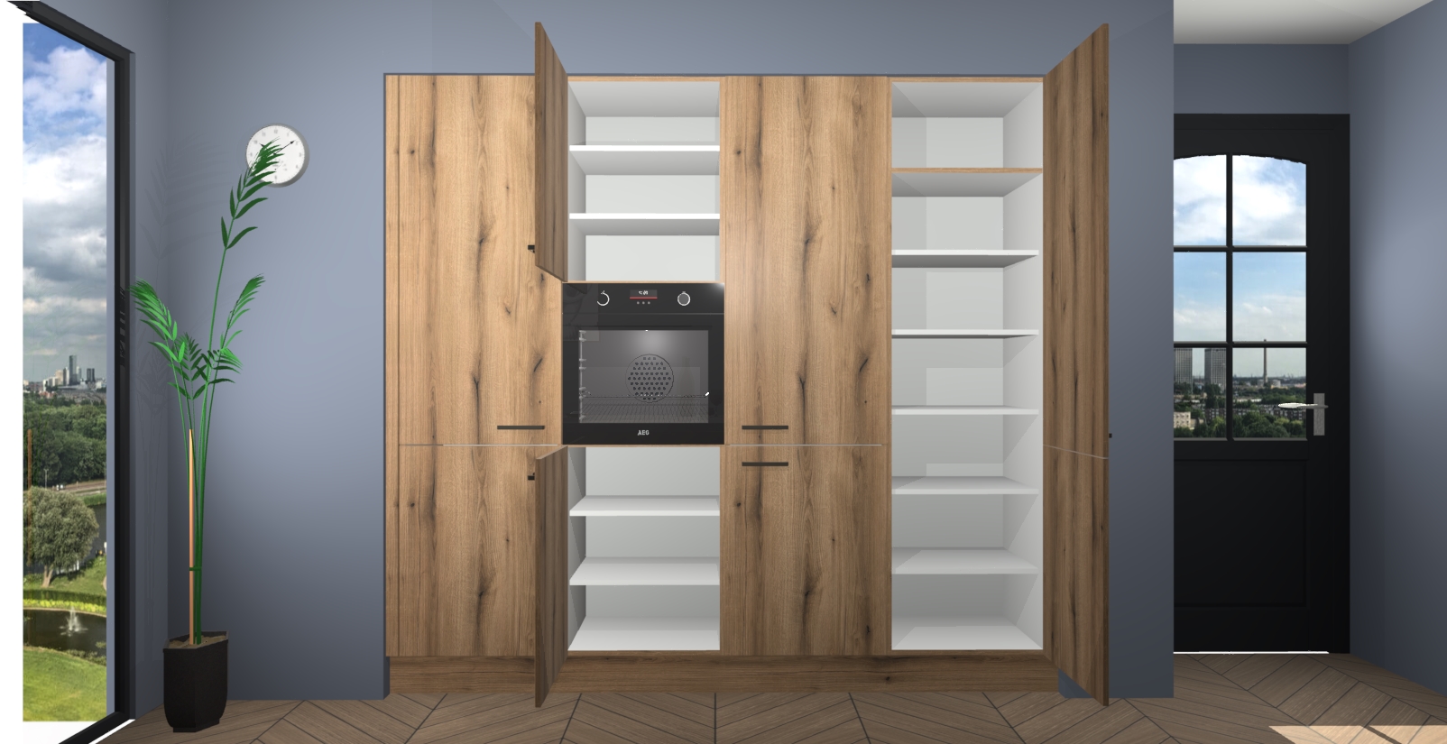 Dankzij de vele opbergruimte wordt praktisch elke centimeter van uw keuken optimaal benut, wat de ruimte een opgeruimde en sfeervolle uitstraling geeft. Bovendien zijn we er trots op dat we een snelle levering van 7 weken en een vaste lage prijs kunnen bieden, zodat u deze prachtige keuken in een mum van tijd in huis hebt!