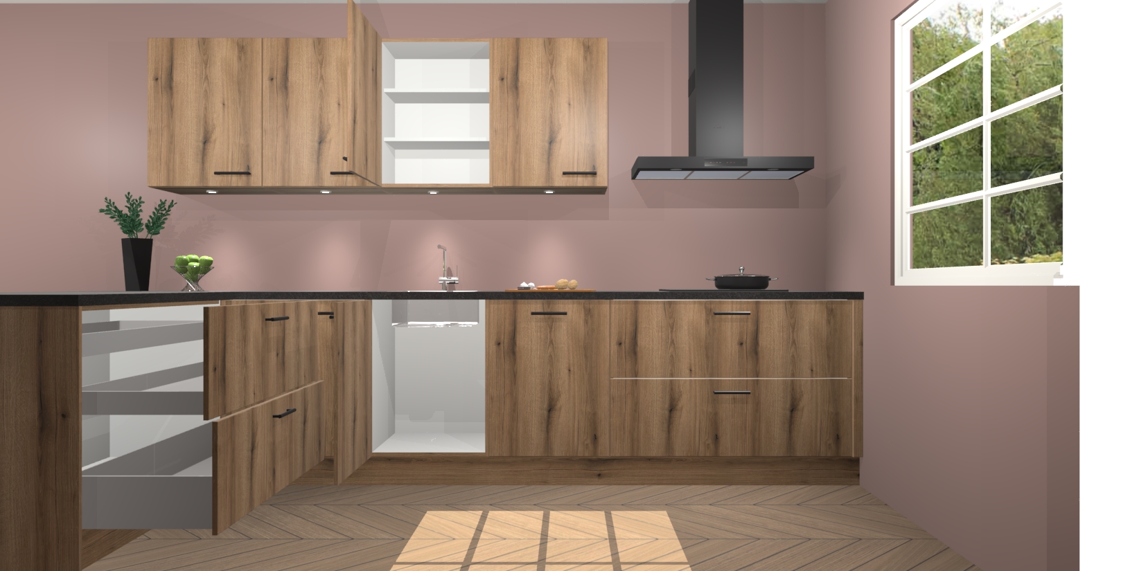 Inclusief plinten, stelpoten en werkblad