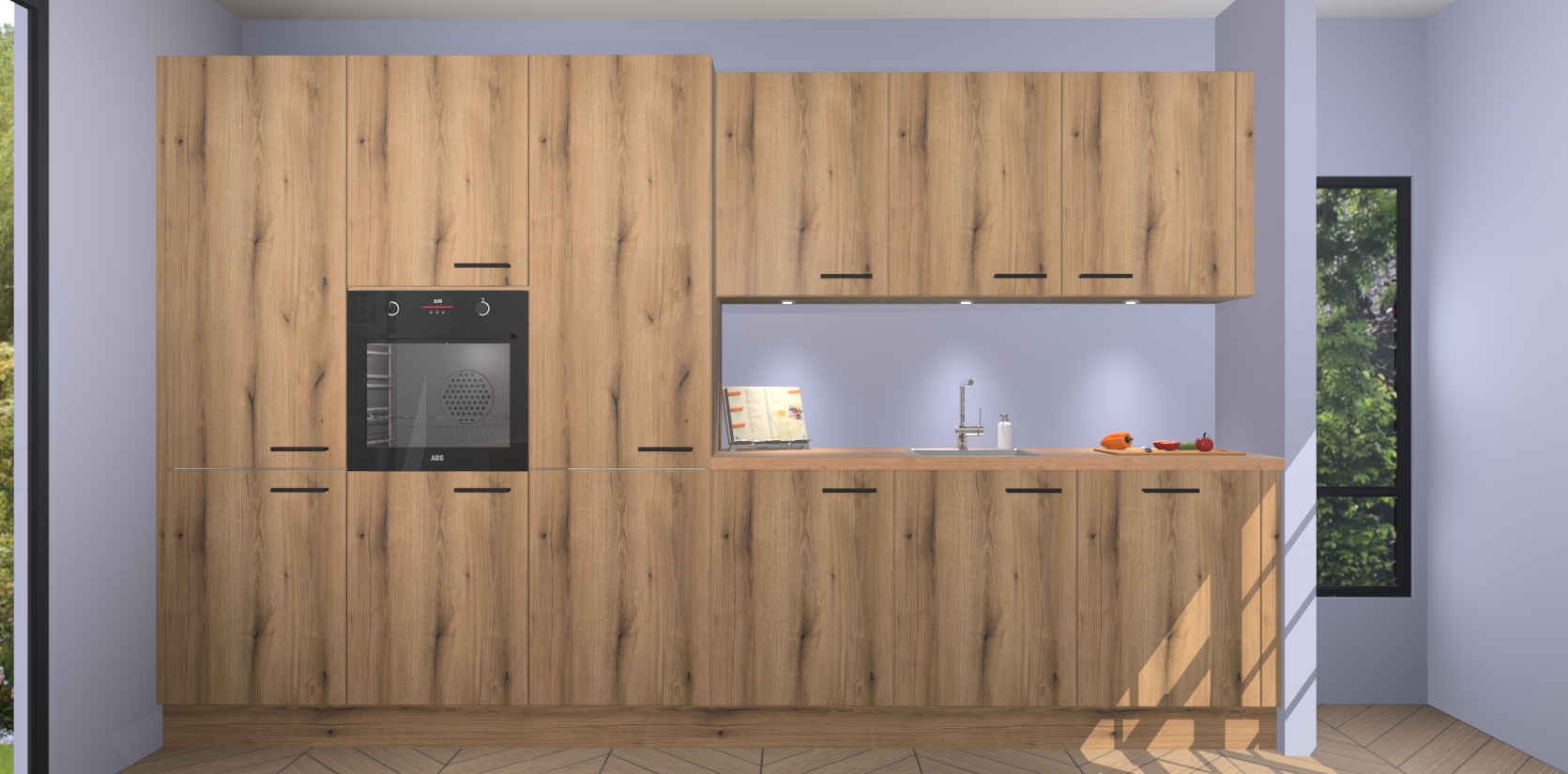 Maak kennis met de nieuwe Goud Eiken keuken Straatsburg, dat gemaakt is voor de moderne huiseigenaar. Deze chique en eigentijdse keuken geeft uw huis een instant upgrade. Het Goud Eiken ontwerp creëert de perfecte balans tussen elegantie en functionaliteit en geeft uw ruimte een strakke, uitnodigende sfeer. Het spoeleiland geeft ruime opbergruimte en met de soft-close deuren is deze keuken perfect voor elk huis.