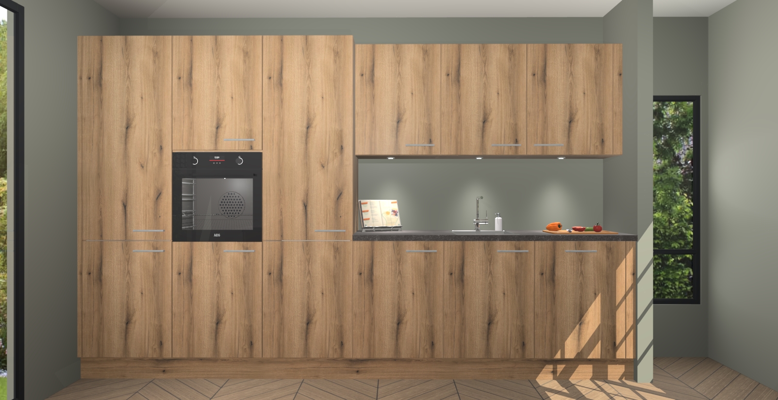 De Goud Eiken keuken Straatsburg wordt geleverd met een snelle levertijd van 7 weken, zodat u hem zo snel mogelijk kunt installeren. En omdat de kasten voorgemonteerd worden geleverd, is de installatie snel en eenvoudig - dat scheelt tijd en gedoe.