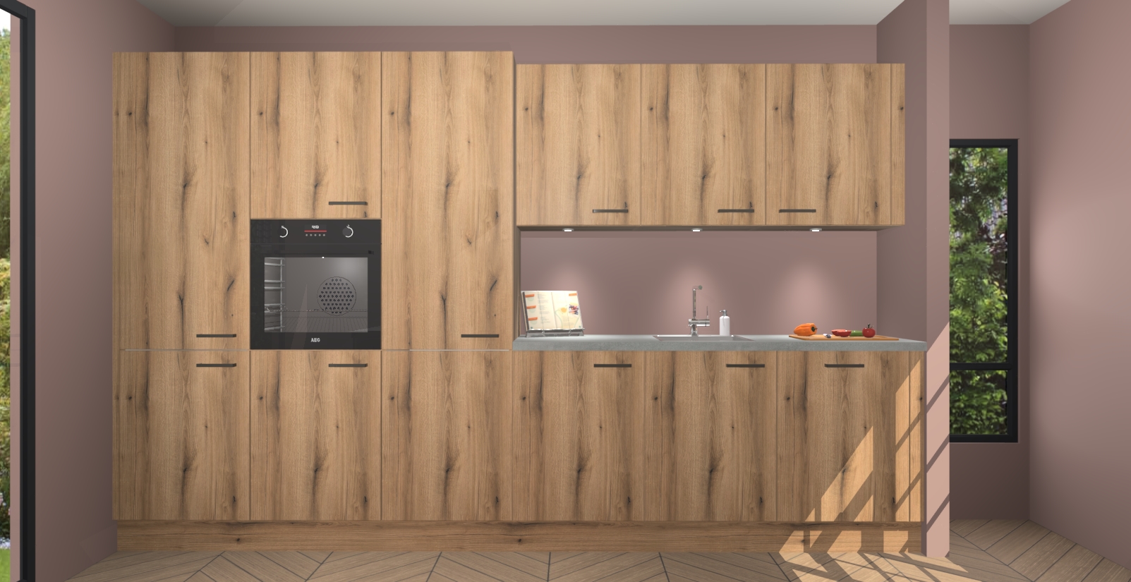 Maak kennis met de nieuwe Goud Eiken keuken Straatsburg, dat gemaakt is voor de moderne huiseigenaar. Deze chique en eigentijdse keuken geeft uw huis een instant upgrade. Het Goud Eiken ontwerp creëert de perfecte balans tussen elegantie en functionaliteit en geeft uw ruimte een strakke, uitnodigende sfeer. Het spoeleiland geeft ruime opbergruimte en met de soft-close deuren is deze keuken perfect voor elk huis.