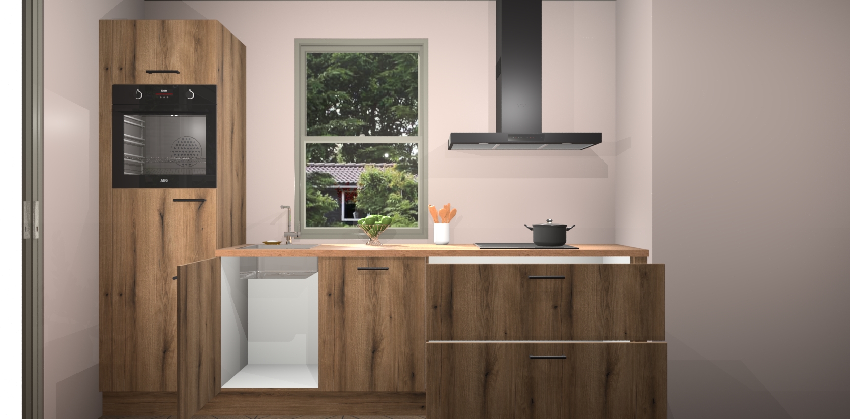 Dankzij de afwerking past de Goud Eiken keuken Toulouse naadloos in elk huis of appartement. De soft-close deuren geven je extra gemoedsrust, want ze sluiten vanzelf en slaan nooit dicht! En alsof dat nog niet genoeg is, worden deze kasten volledig gemonteerd geleverd, dus maak je geen zorgen over eventuele installatieproblemen.