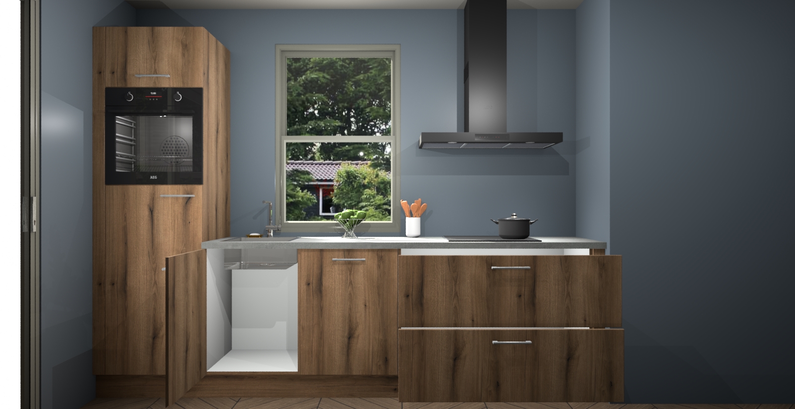 Dankzij de afwerking past de Goud Eiken keuken Toulouse naadloos in elk huis of appartement. De soft-close deuren geven je extra gemoedsrust, want ze sluiten vanzelf en slaan nooit dicht! En alsof dat nog niet genoeg is, worden deze kasten volledig gemonteerd geleverd, dus maak je geen zorgen over eventuele installatieproblemen.