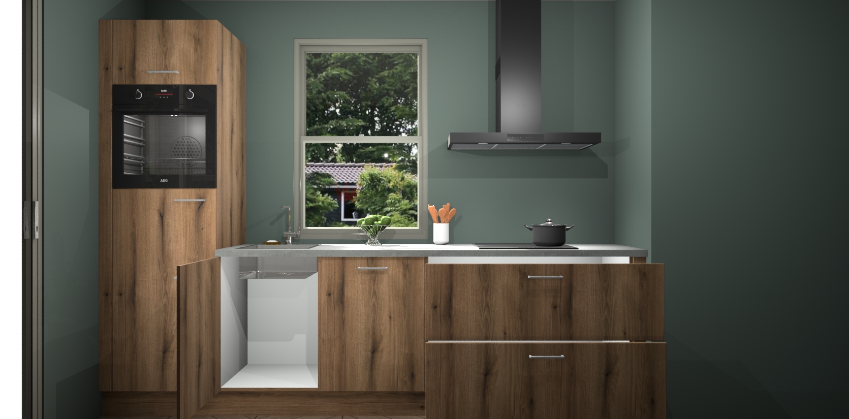 Dankzij de afwerking past de Goud Eiken keuken naadloos in elk huis of appartement. De soft-close deuren geven je extra gemoedsrust, want ze sluiten vanzelf en slaan nooit dicht! En alsof dat nog niet genoeg is, worden deze kasten volledig gemonteerd geleverd, dus maak je geen zorgen over eventuele installatieproblemen.