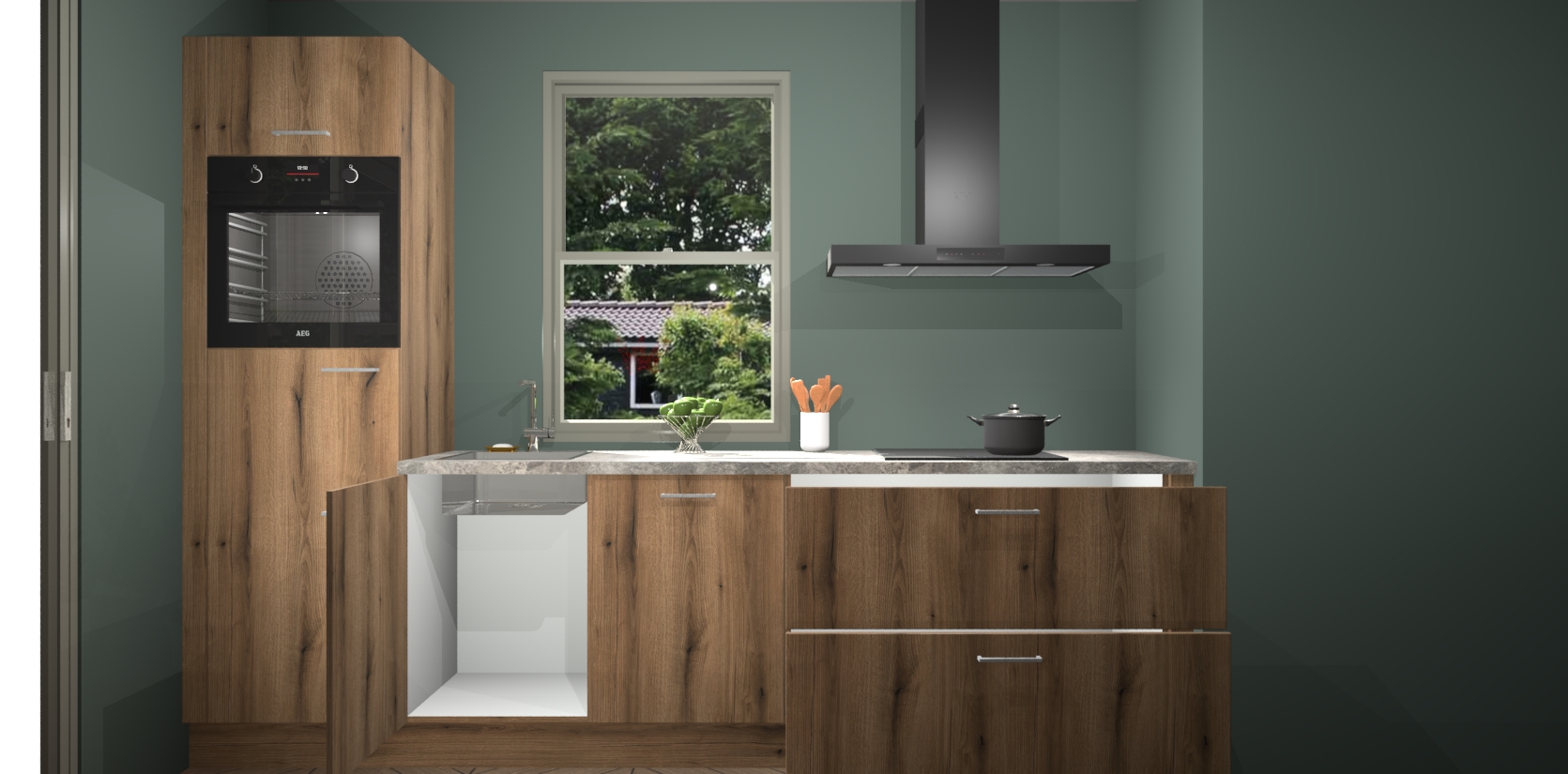 Dankzij de afwerking past de Goud Eiken keuken naadloos in elk huis of appartement. De soft-close deuren geven je extra gemoedsrust, want ze sluiten vanzelf en slaan nooit dicht! En alsof dat nog niet genoeg is, worden deze kasten volledig gemonteerd geleverd, dus maak je geen zorgen over eventuele installatieproblemen.