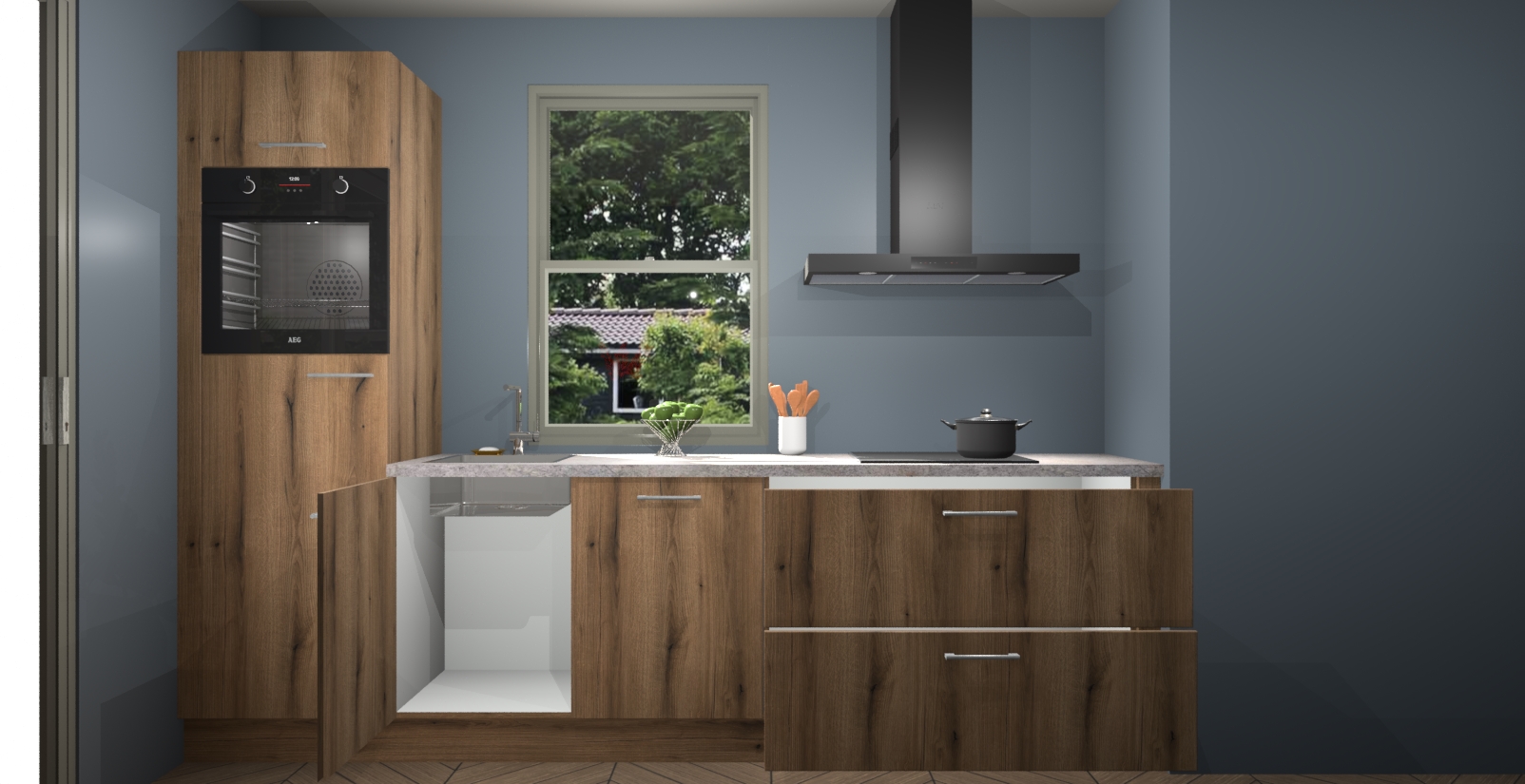 Dankzij de afwerking past de Goud Eiken keuken Toulouse naadloos in elk huis of appartement. De soft-close deuren geven je extra gemoedsrust, want ze sluiten vanzelf en slaan nooit dicht! En alsof dat nog niet genoeg is, worden deze kasten volledig gemonteerd geleverd, dus maak je geen zorgen over eventuele installatieproblemen.