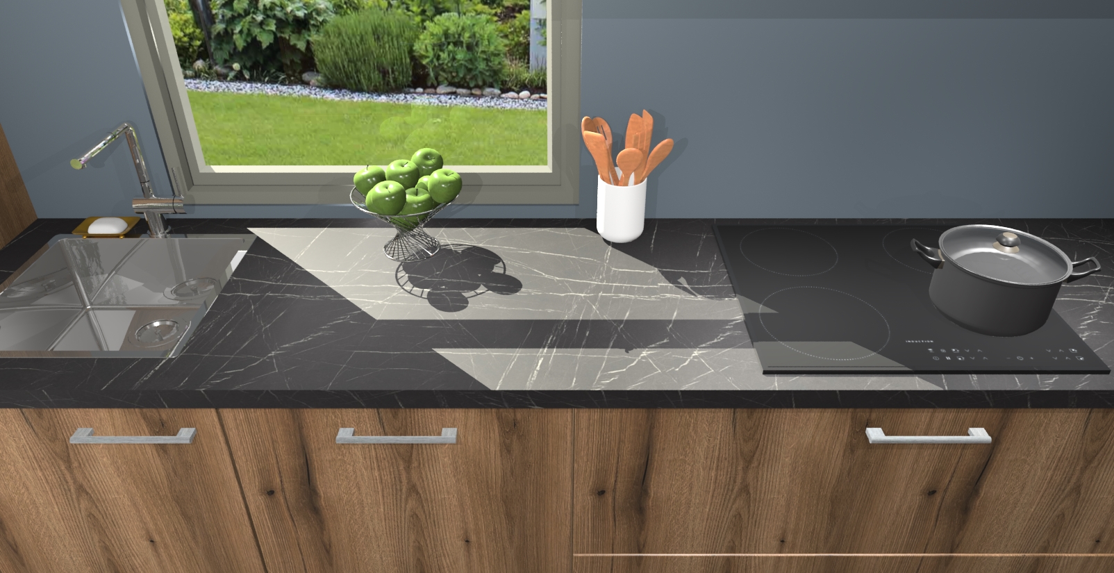 - Bij een hoekwerkblad zijn de hoeken in gevreesd en op maat gemaakt