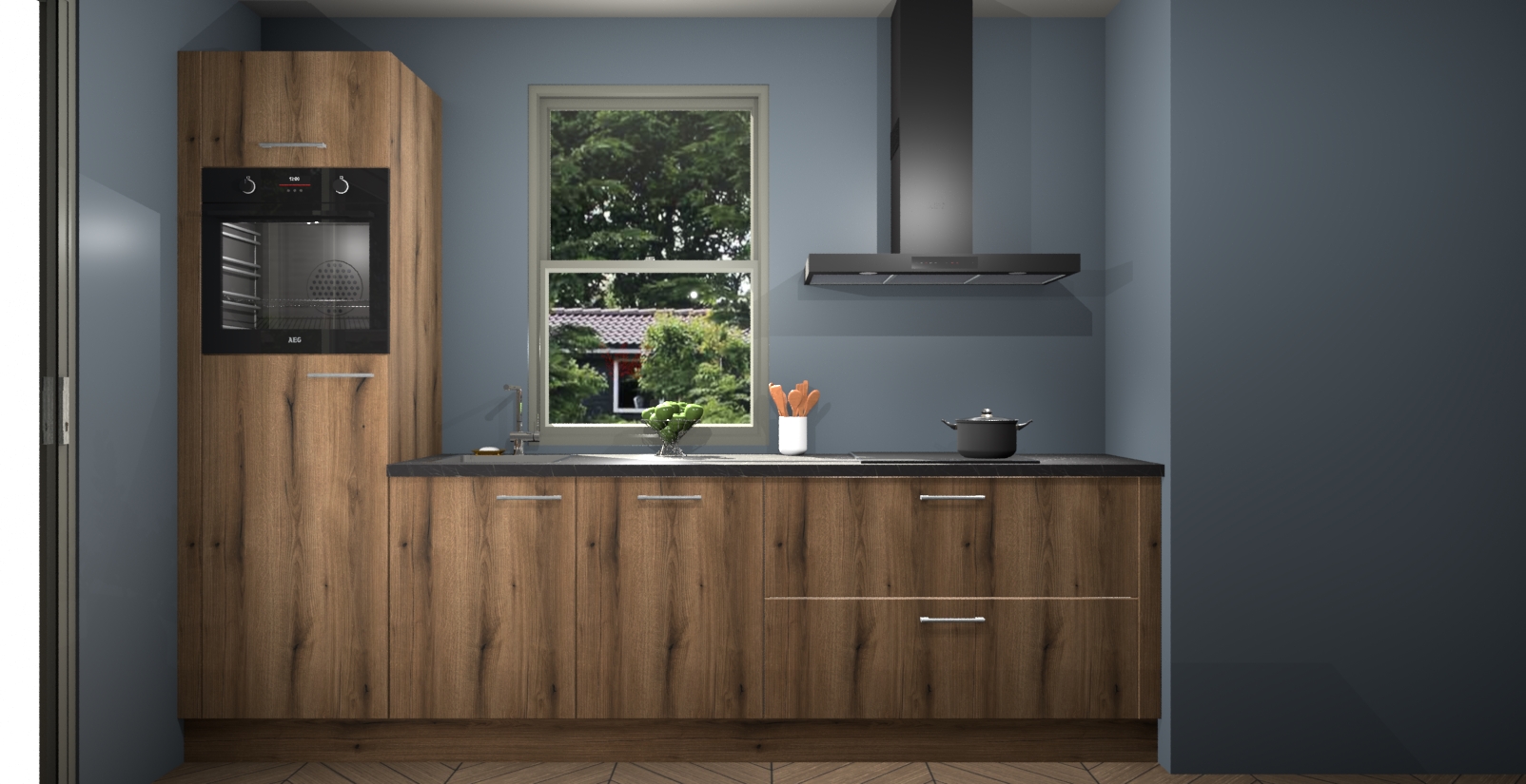 Dankzij de afwerking past de Goud Eiken keuken Toulouse naadloos in elk huis of appartement. De soft-close deuren geven je extra gemoedsrust, want ze sluiten vanzelf en slaan nooit dicht! En alsof dat nog niet genoeg is, worden deze kasten volledig gemonteerd geleverd, dus maak je geen zorgen over eventuele installatieproblemen.