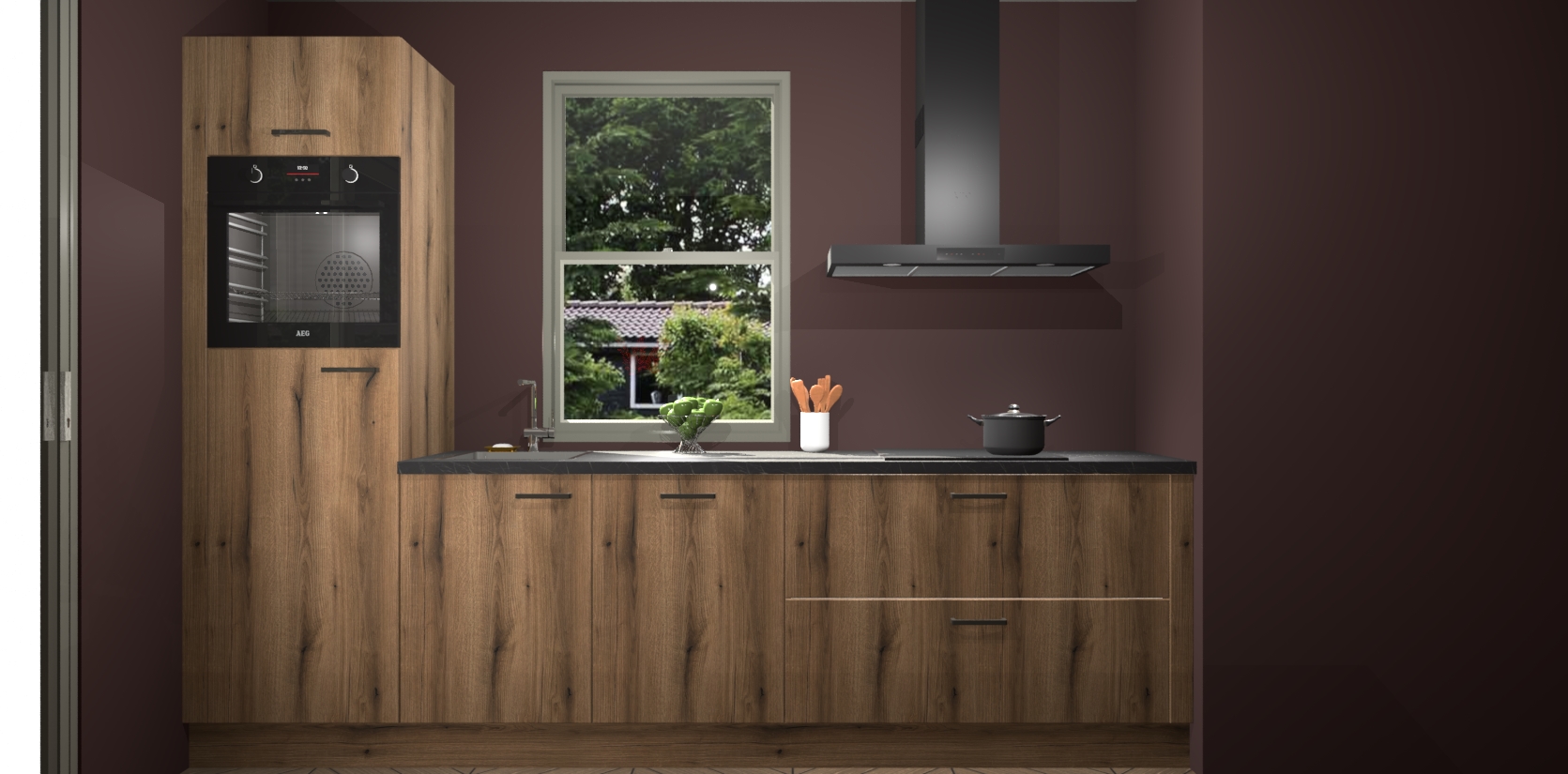 Een stijlvolle en praktische keuken als deze mag gezien worden. Dankzij de prachtige Goud Eiken afwerking wordt de keuken gemakkelijk het middelpunt van uw huis - hij ziet er geweldig uit onder allerlei lichtomstandigheden, van dag tot nacht!