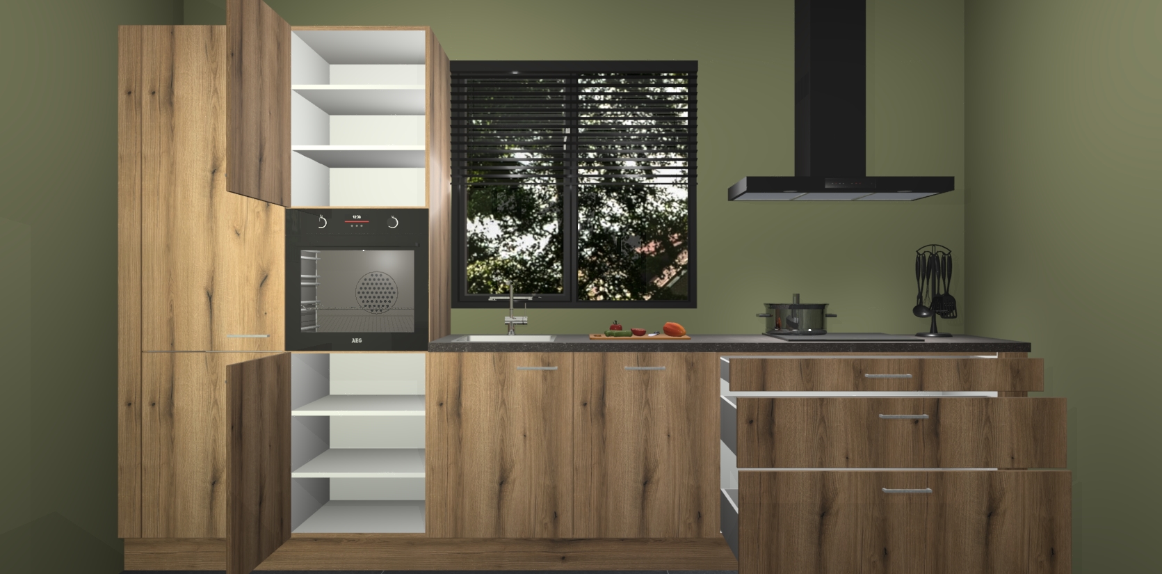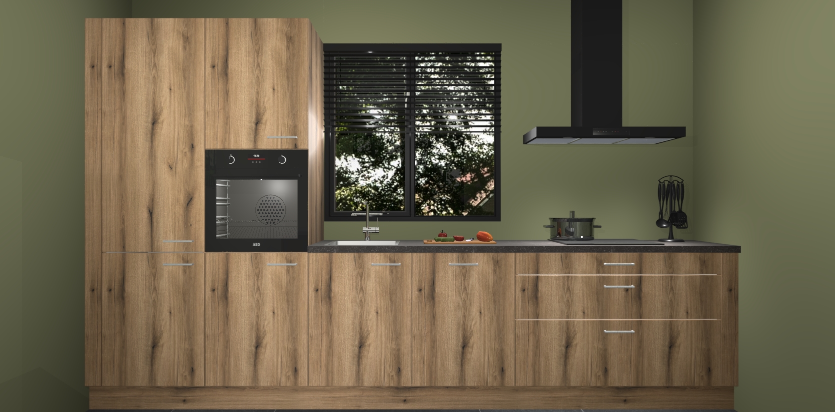 Maak kennis met de gouden eiken keuken Bonaire: de perfecte balans tussen tijdloos en modern. Met voldoende opbergruimte zal deze keuken de afgunst van uw vrienden en familie zijn, terwijl uw leven moeiteloos georganiseerd en rommelvrij blijft.