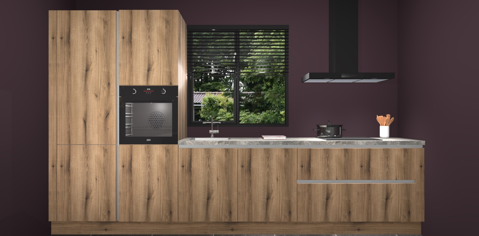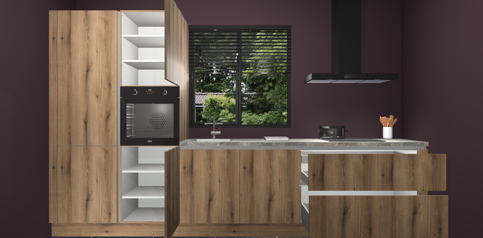 Maak kennis met de gouden eiken keuken Bonaire: de perfecte balans tussen tijdloos en modern. Met voldoende opbergruimte zal deze keuken de afgunst van uw vrienden en familie zijn, terwijl uw leven moeiteloos georganiseerd en rommelvrij blijft.