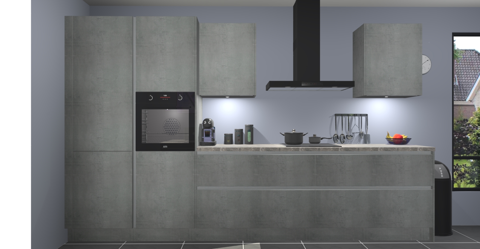 De Beton parelgrijs keuken Spanje is de moderne keuken van uw dromen! Met een sfeer die uw innerlijke woninginrichter tot leven laat komen, kunt u er zeker van zijn dat uw keuken volledig is uitgerust om aan uw behoeften te voldoen en meer! Deze keuken is voorzien van veel opbergruimte en een mooi spoeleiland, zodat u uw favoriete keukengerei en ingrediënten binnen handbereik hebt.