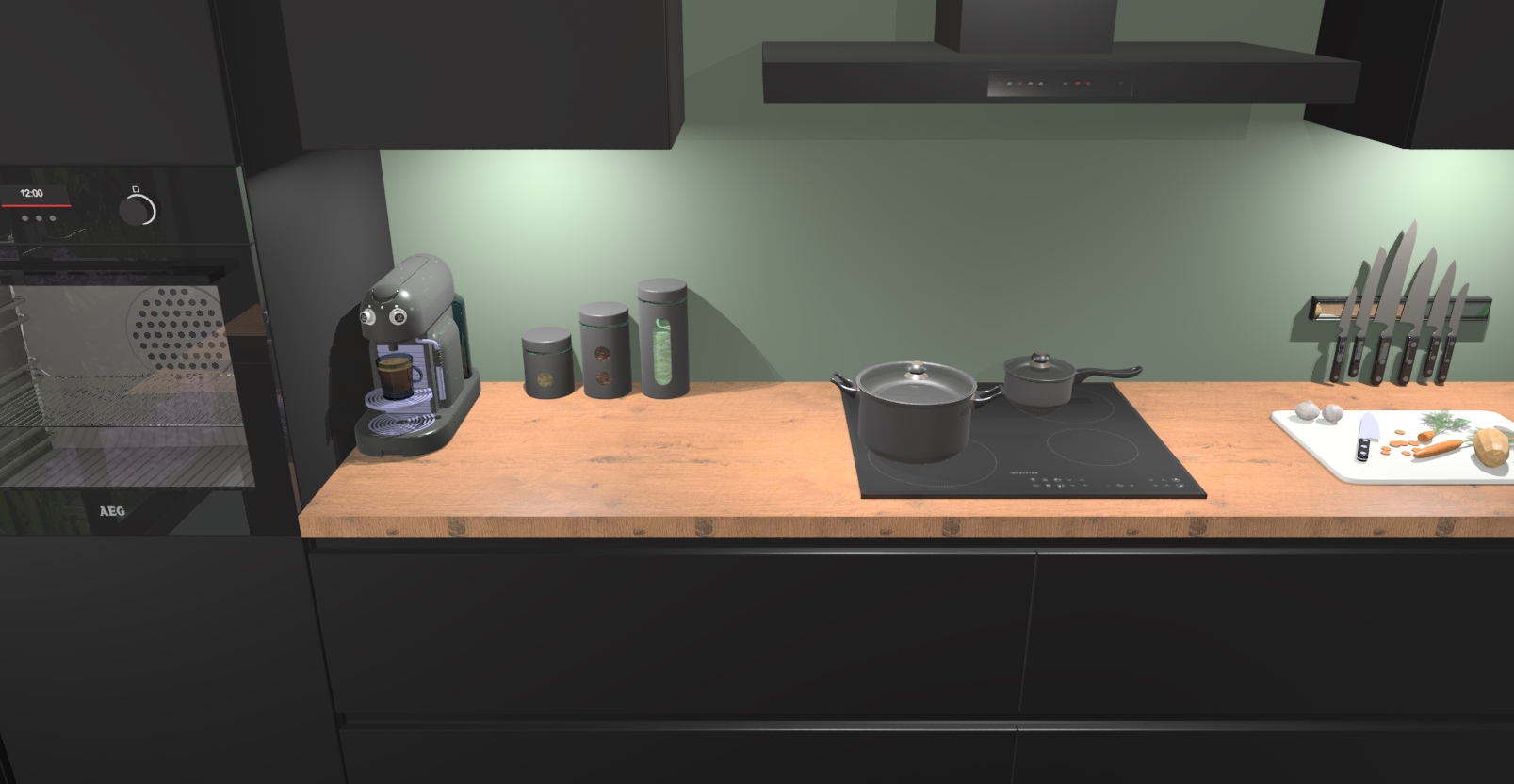 De Zwarte keuken Spanje is de moderne keuken van uw dromen! Met een sfeer die uw innerlijke woninginrichter tot leven laat komen, kunt u er zeker van zijn dat uw keuken volledig is uitgerust om aan uw behoeften te voldoen en meer! Deze keuken is voorzien van veel opbergruimte en een mooi spoeleiland, zodat u uw favoriete keukengerei en ingrediënten binnen handbereik hebt.