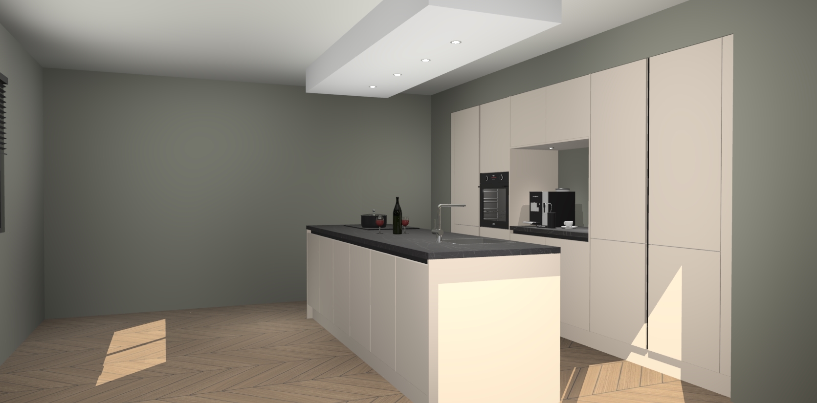 Sfeervol luxe met de Kasjmier greeploze keuken Lodz! Reken op een moderne look die met zijn schitterende Kasjmier kleur en het prachtige keukeneiland echt zal schitteren in uw keuken. Met veel verschillende berging opties zult u alles kunnen opbergen wat u nodig heeft in deze hoopvolle ruimte, waaronder ook soft-close vergrendeling.