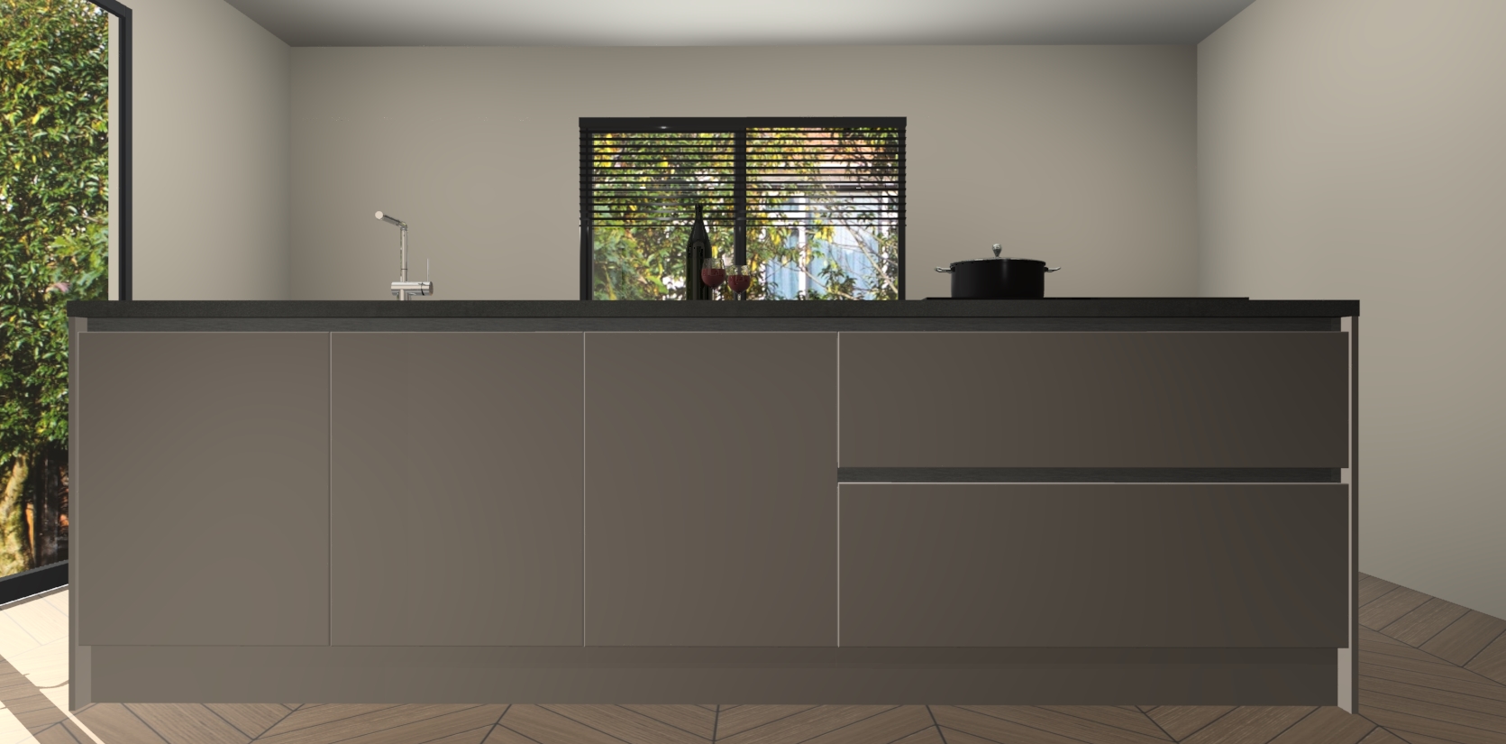 Inclusief plinten, stelpoten en werkblad