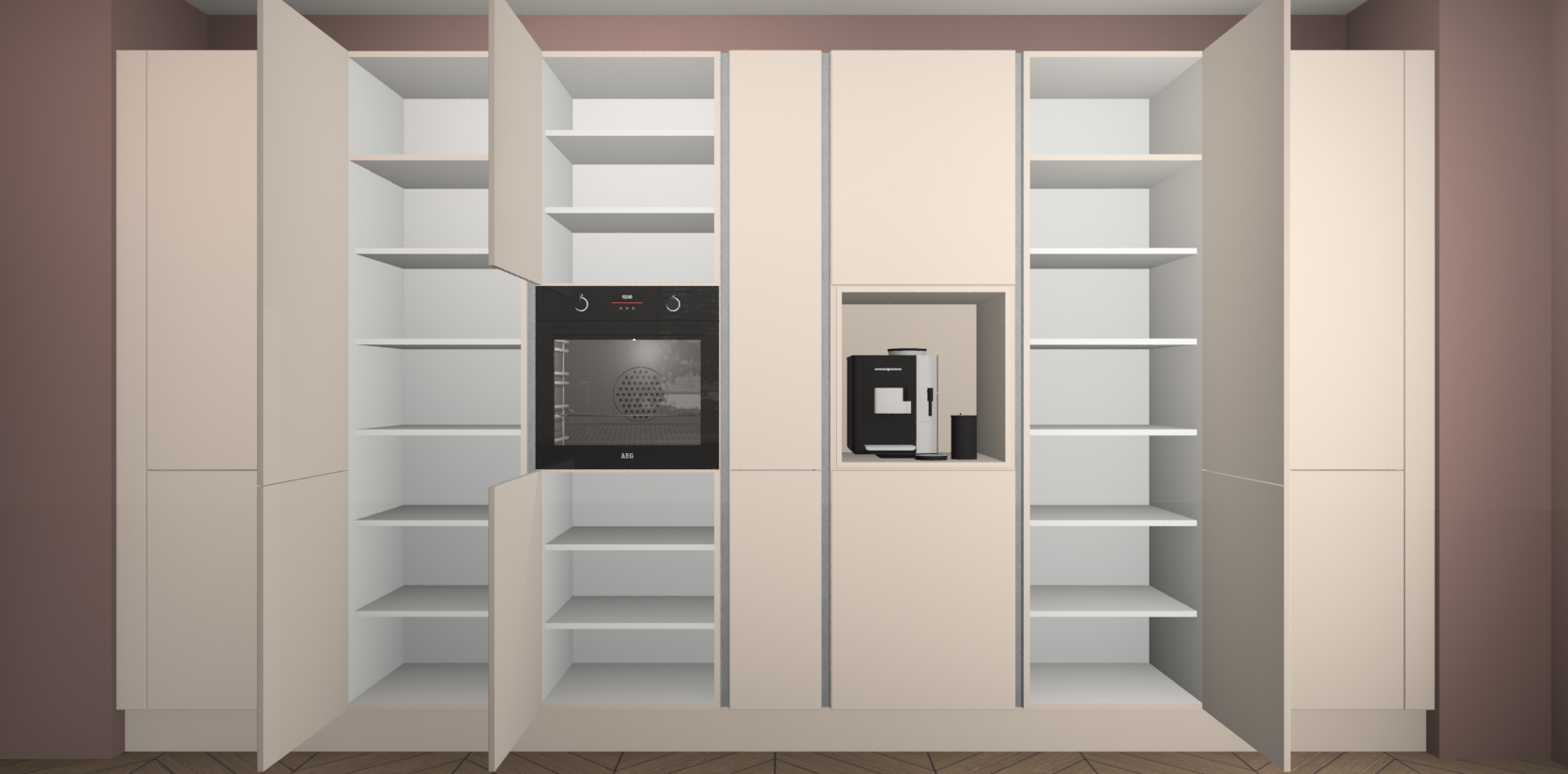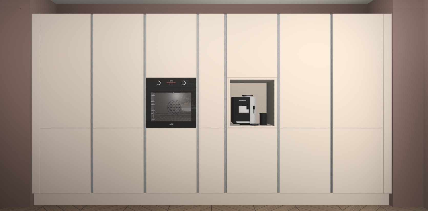De Kasjmier greeploze keuken Nantes wordt geleverd met een set van 5 ingebouwde apparaten: Een oven, inductiekookplaat, afzuigkap, vaatwasser en koelkast. Deze kunnen gemakkelijk worden opgewaardeerd naar AEG. Met de gegarandeerde lage prijs en de snelle levering van 7 weken kan u er op rekenen dat de Kasjmier greeploze keuken Nantes zo snel mogelijk uw huis bereikt!