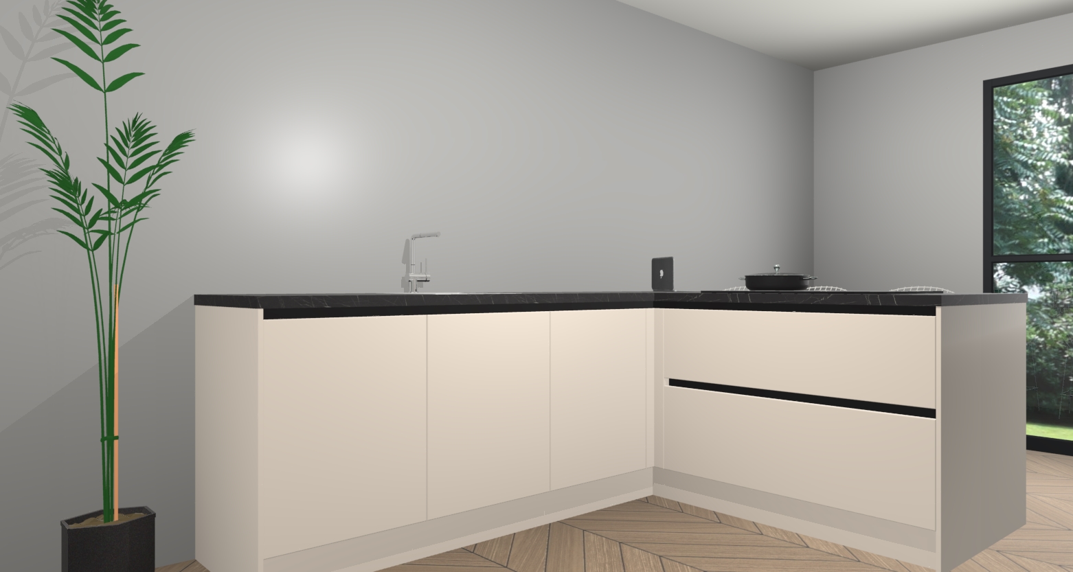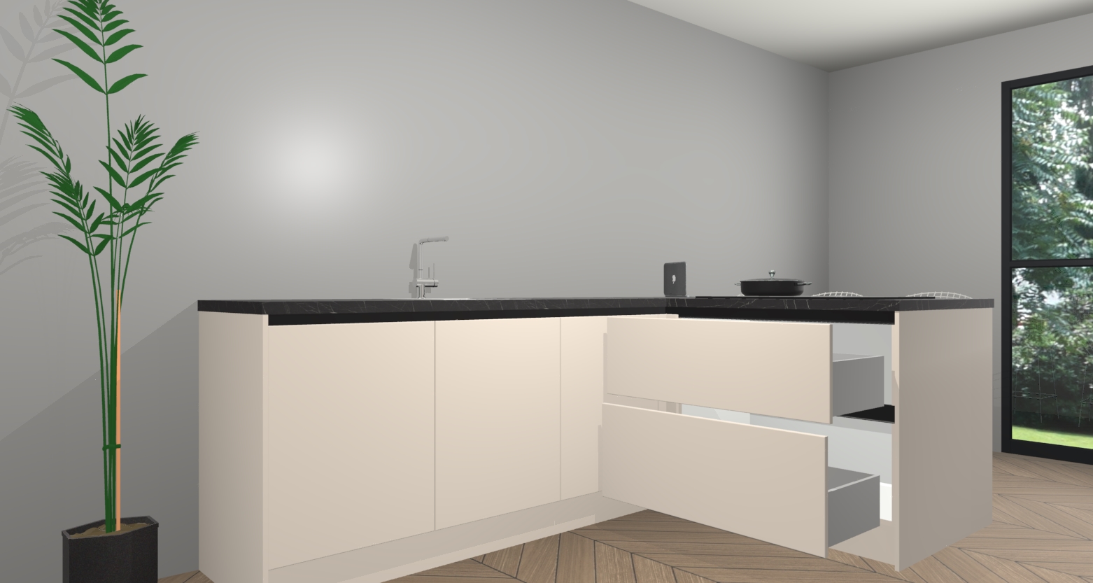 Inclusief plinten, stelpoten en werkblad