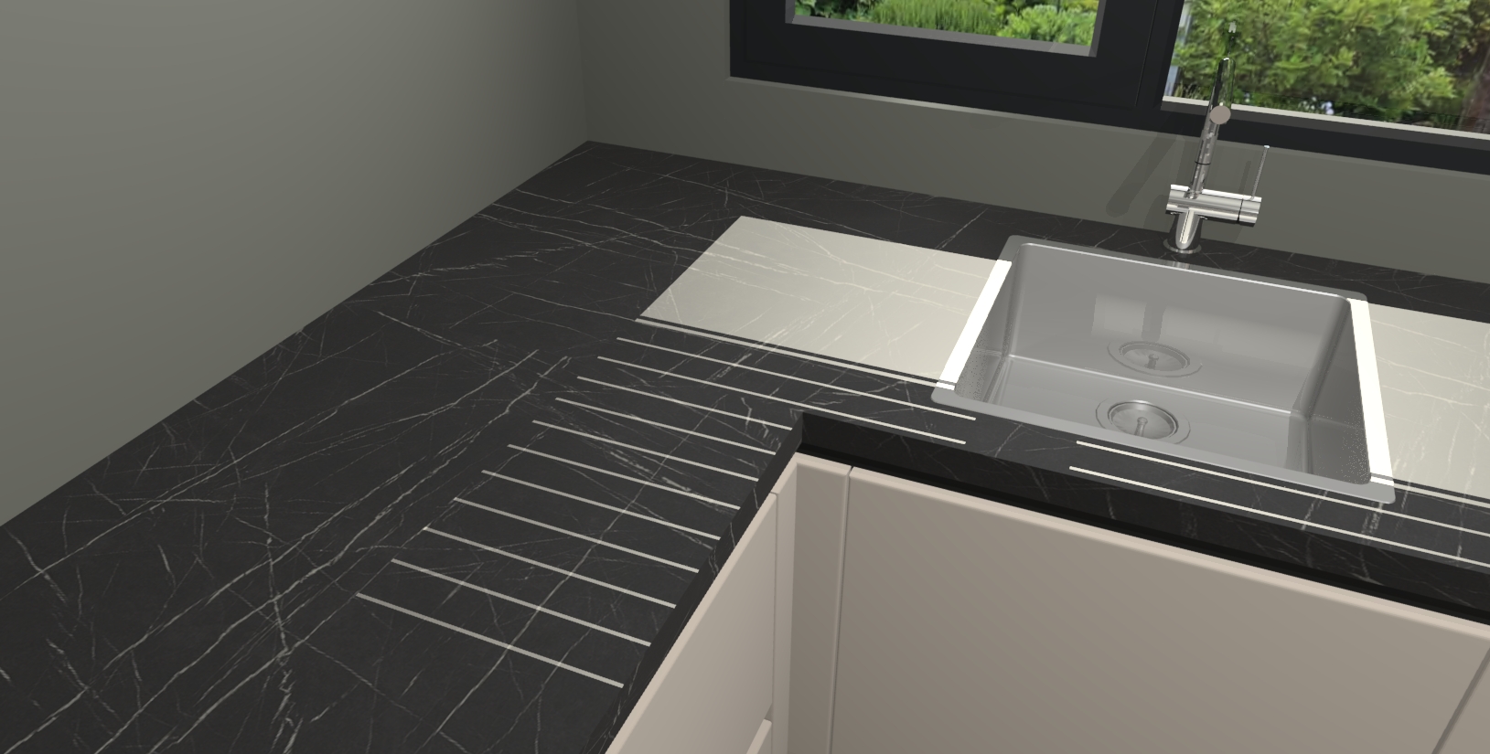 - Bij een hoekwerkblad zijn de hoeken in gevreesd en op maat gemaakt