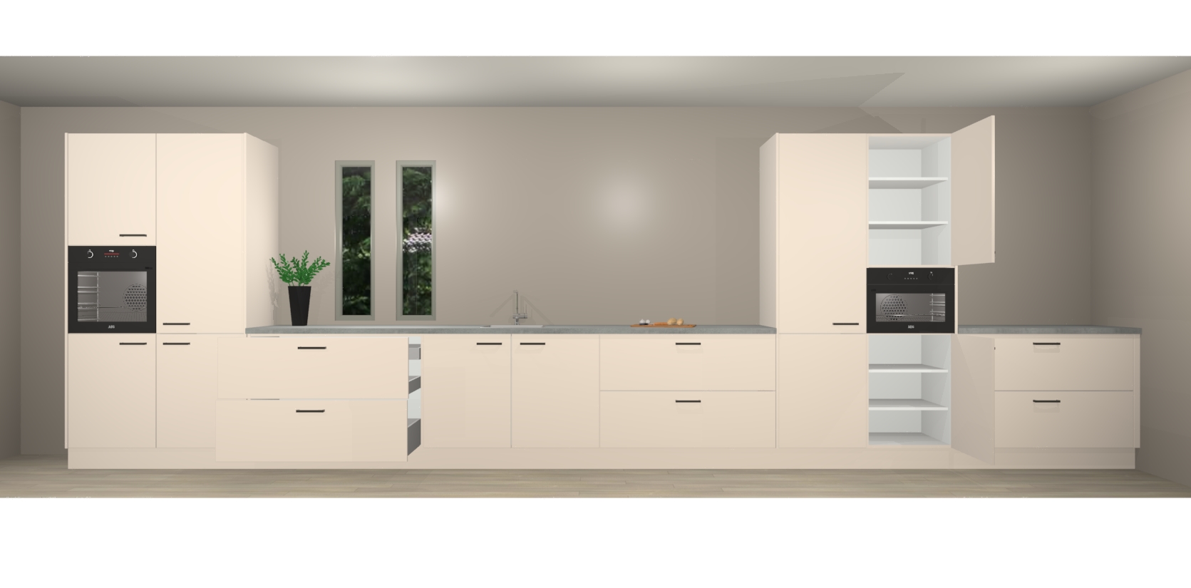 De perfecte toevoeging aan uw droomkeuken! De kasjmier keuken Krakor is een opmerkelijke en verfijnde keuken. Hij is ontworpen met moderne lijnen en tijdloze schoonheid die garant staan voor een luxe uitstraling. Deze uiterst functionele en mooie keuken heeft een reeks verbazingwekkende functies: de overvloedige opbergruimte bevat soft close deuren, terwijl vijf inbouwapparaten zijn inbegrepen in de vaste lage prijs. Beter nog, uw kasjmier keuken Krakor bestellen duurt slechts 7 weken met levering van voorgemonteerde kasten.