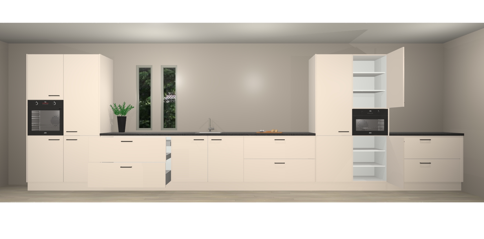 De perfecte toevoeging aan uw droomkeuken! De kasjmier keuken Krakor is een opmerkelijke en verfijnde keuken. Hij is ontworpen met moderne lijnen en tijdloze schoonheid die garant staan voor een luxe uitstraling. Deze uiterst functionele en mooie keuken heeft een reeks verbazingwekkende functies: de overvloedige opbergruimte bevat soft close deuren, terwijl vijf inbouwapparaten zijn inbegrepen in de vaste lage prijs. Beter nog, uw kasjmier keuken Krakor bestellen duurt slechts 7 weken met levering van voorgemonteerde kasten.