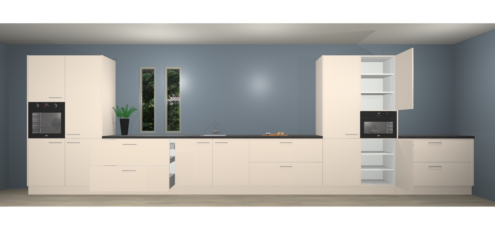 Inclusief plinten, stelpoten en werkblad