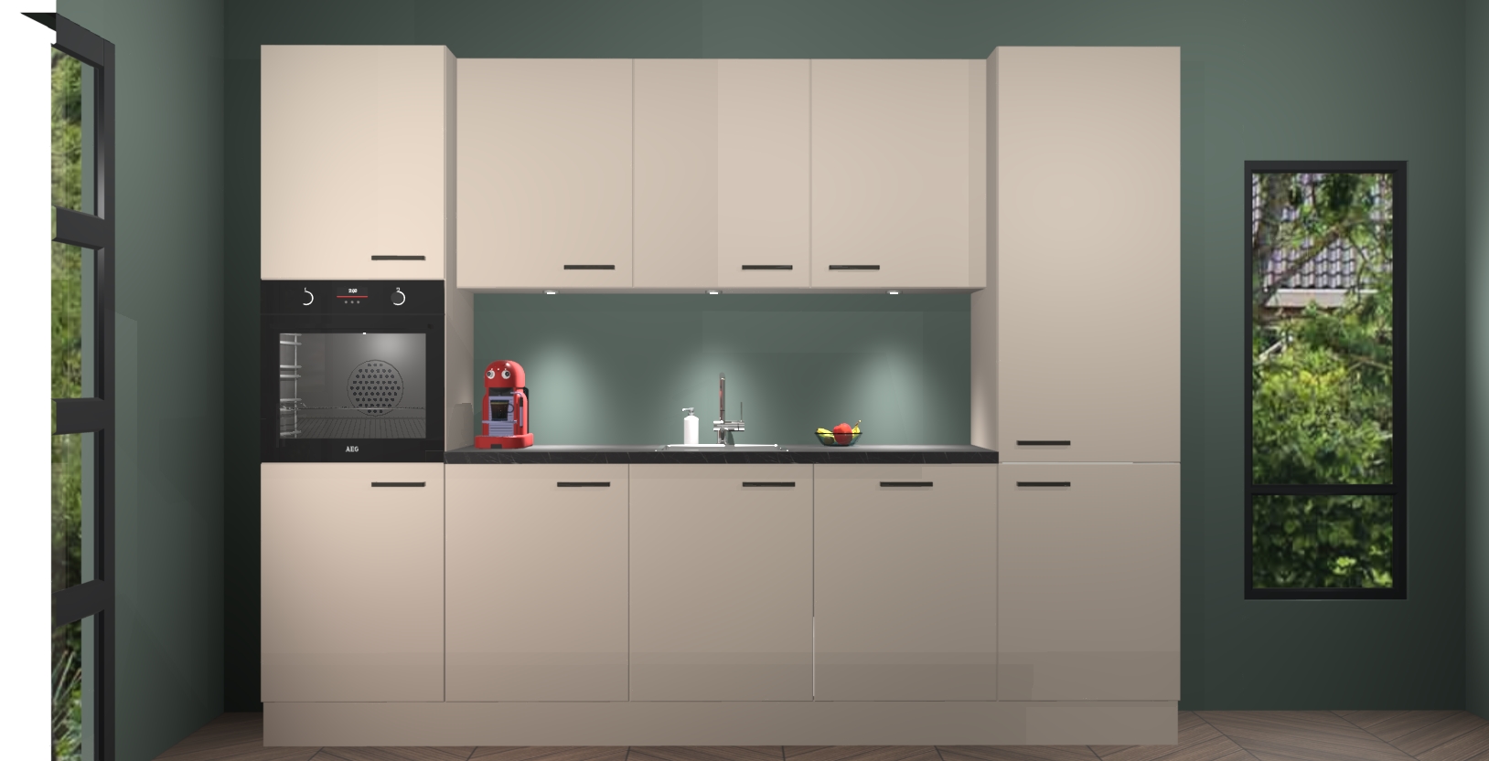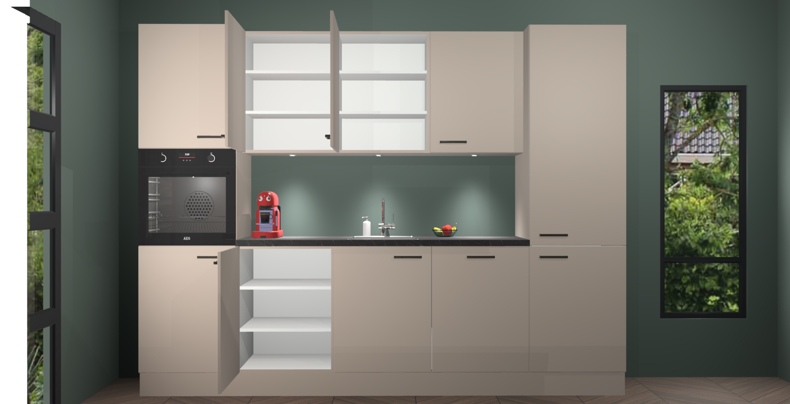 Of u nu op zoek bent naar een modern of traditioneel ontwerp, Kitchen247 heeft iets dat bij elke smaak of stijl past. Gemaakt van eersteklas materialen en slimme functies, biedt deze prachtige keuken uitstekende waarde en kwaliteit om van elke maaltijd een absoluut genot te maken. Geloof ons als we zeggen dat deze keuken de seizoenen perfect doorstaat, zonder poespas of gedoe.