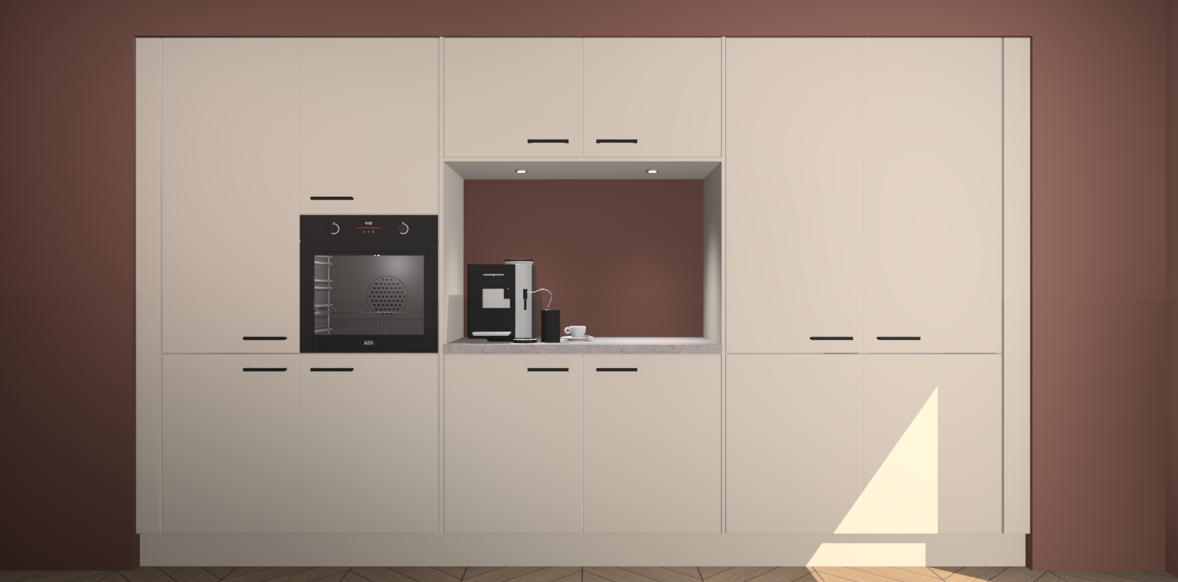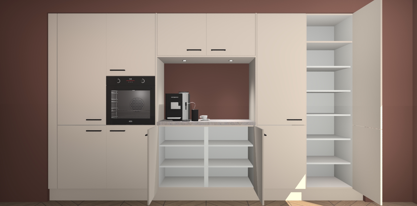 De Kasjmier keuken Lodz wordt geleverd met een set van 5 ingebouwde apparaten: Een oven, inductiekookplaat, afzuigkap, vaatwasser en koelkast. Deze kunnen gemakkelijk worden opgewaardeerd naar AEG. Met de gegarandeerde lage prijs en de snelle levering van 7 weken kan u er op rekenen dat de Kasjmier keuken Lodz zo snel mogelijk uw huis bereikt!