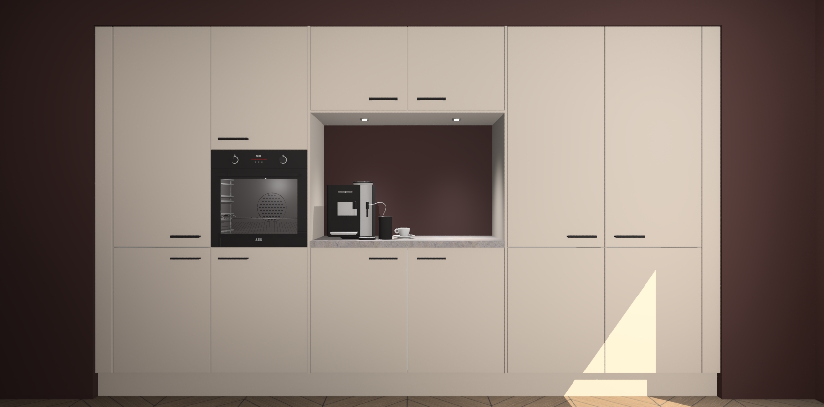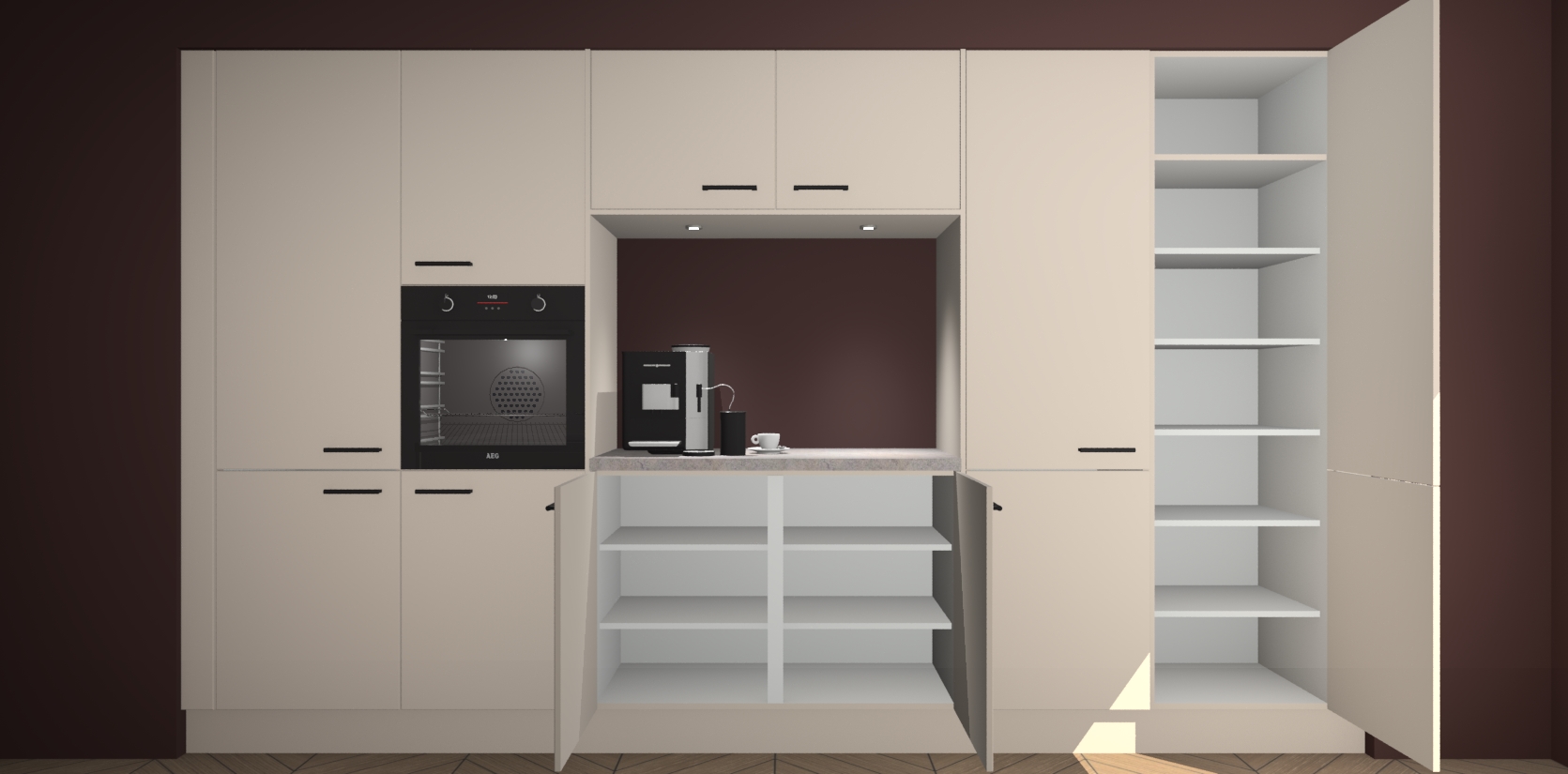De Kasjmier keuken Lodz wordt geleverd met een set van 5 ingebouwde apparaten: Een oven, inductiekookplaat, afzuigkap, vaatwasser en koelkast. Deze kunnen gemakkelijk worden opgewaardeerd naar AEG. Met de gegarandeerde lage prijs en de snelle levering van 7 weken kan u er op rekenen dat de Kasjmier keuken Lodz zo snel mogelijk uw huis bereikt!
