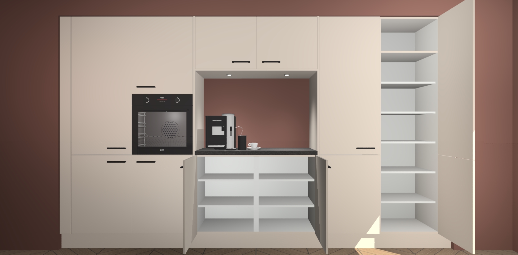 In deze box zijn alle kleuren verzameld van de deuren en werkbladen. Vraag de gratis kleurenbox aan en kijk thuis rustig verder!