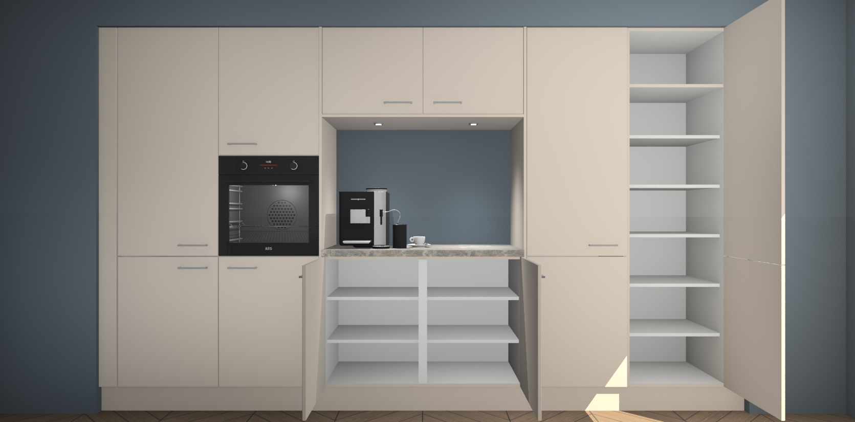 In deze box zijn alle kleuren verzameld van de deuren en werkbladen. Vraag de gratis kleurenbox aan en kijk thuis rustig verder!
