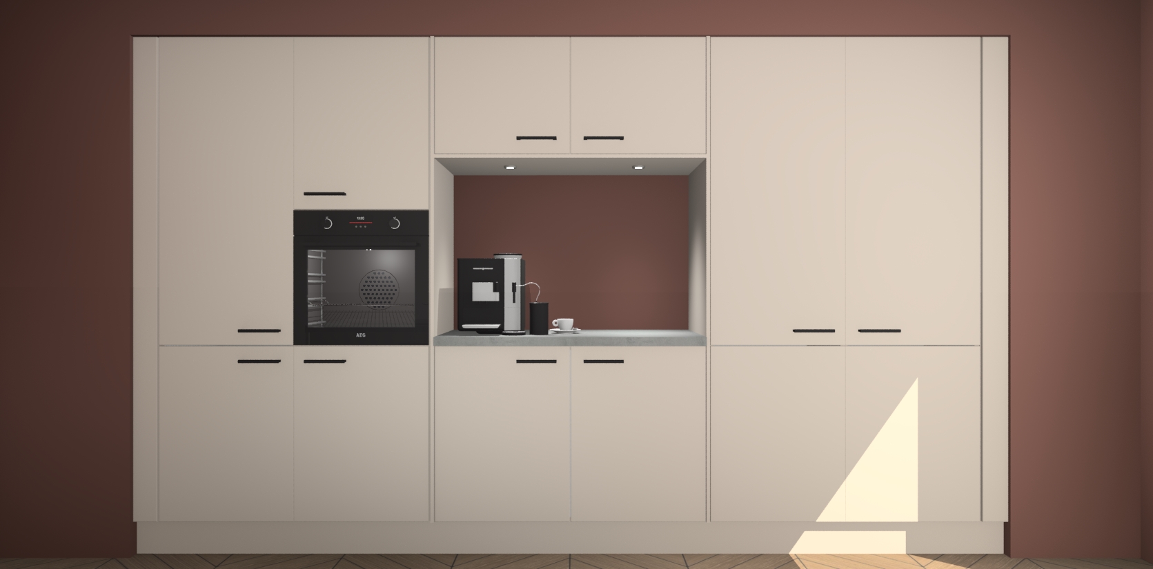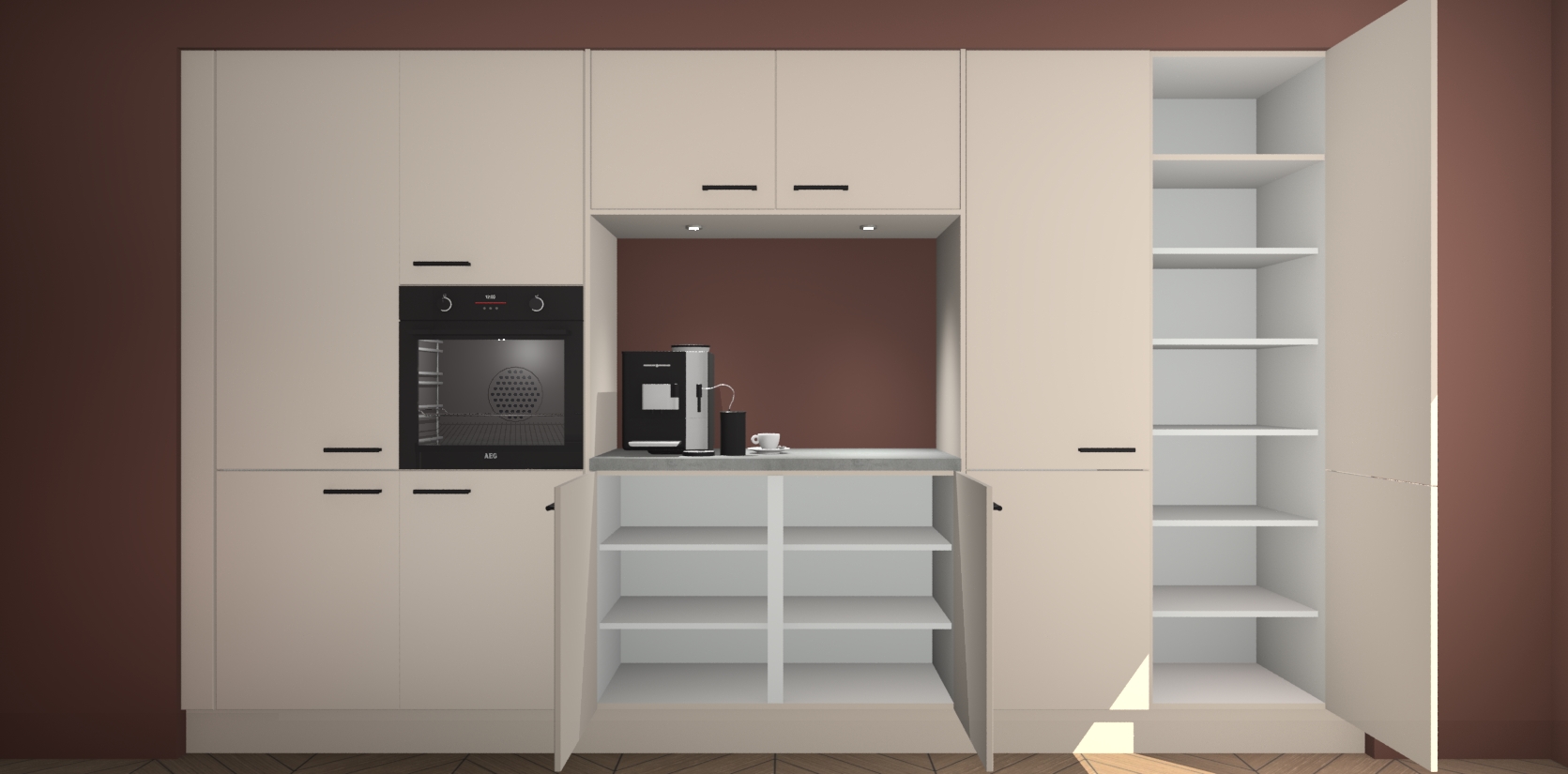 De Kasjmier keuken Lodz wordt geleverd met een set van 5 ingebouwde apparaten: Een oven, inductiekookplaat, afzuigkap, vaatwasser en koelkast. Deze kunnen gemakkelijk worden opgewaardeerd naar AEG. Met de gegarandeerde lage prijs en de snelle levering van 7 weken kan u er op rekenen dat de Kasjmier keuken Lodz zo snel mogelijk uw huis bereikt!