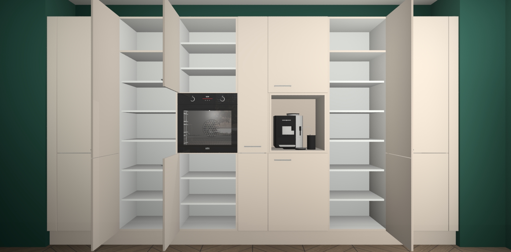 De Kasjmier keuken Nantes wordt geleverd met een set van 5 ingebouwde apparaten: Een oven, inductiekookplaat, afzuigkap, vaatwasser en koelkast. Deze kunnen gemakkelijk worden opgewaardeerd naar AEG. Met de gegarandeerde lage prijs en de snelle levering van 7 weken kan u er op rekenen dat de Kasjmier keuken Nantes zo snel mogelijk uw huis bereikt!